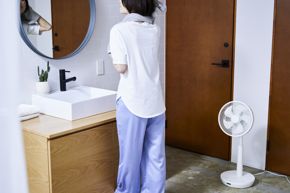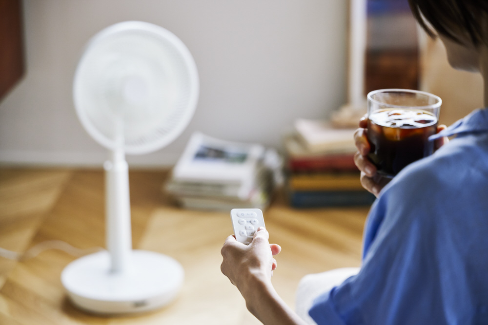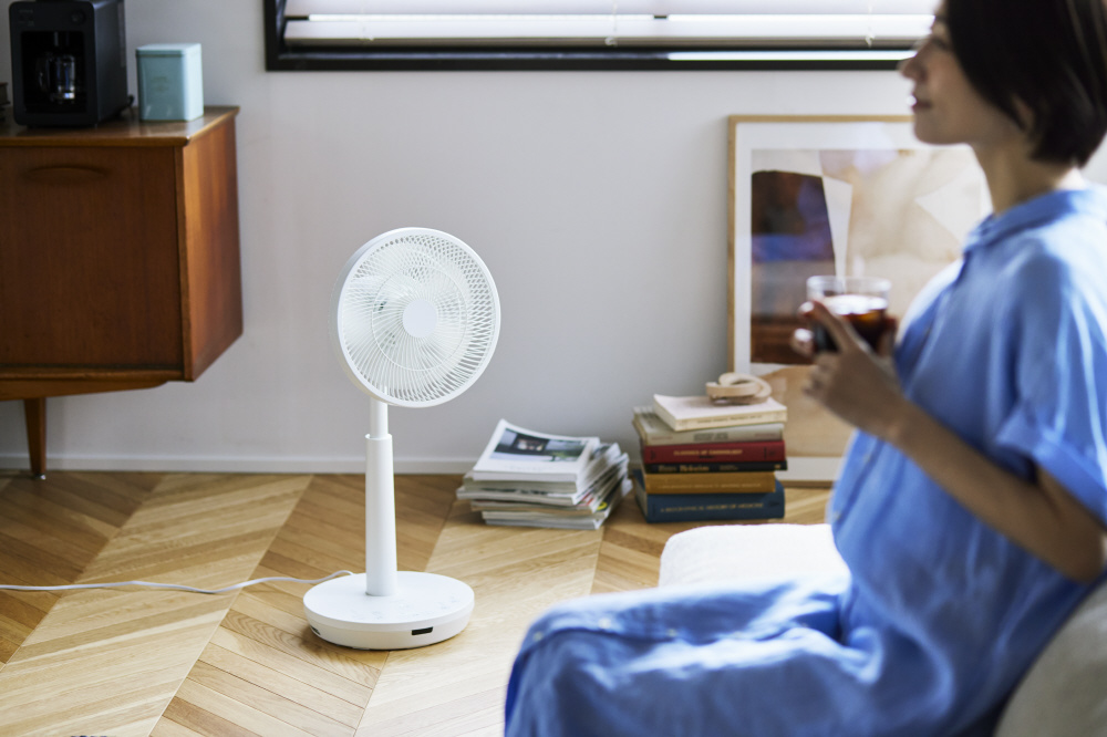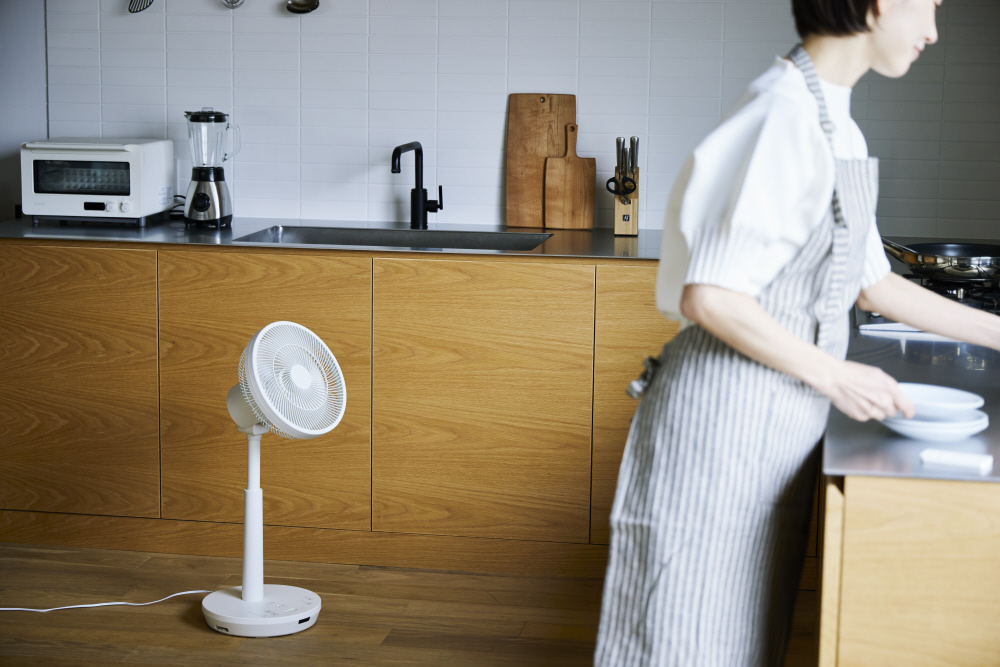 声で操作できるサーキュレーター扇風機「Wafree(ワフリー )」。洗濯物を部屋干している時も、料理中で手がふさがっている時も、「ワフリー、きいて」と話しかければ、音声によるハンズフリー操作ができます。全9種のハンズフリー操作に対応。