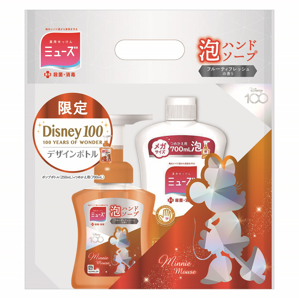 | 商品名 | ミューズ 泡ハンドソープ トライアルパック ディズニー100周年デザインボトル(ボトル250mL+つめかえ用700mL) |