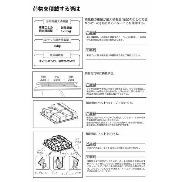 ・コンテナボックスやテント、タープなど、車内に載り切らない荷物の積載に便利。