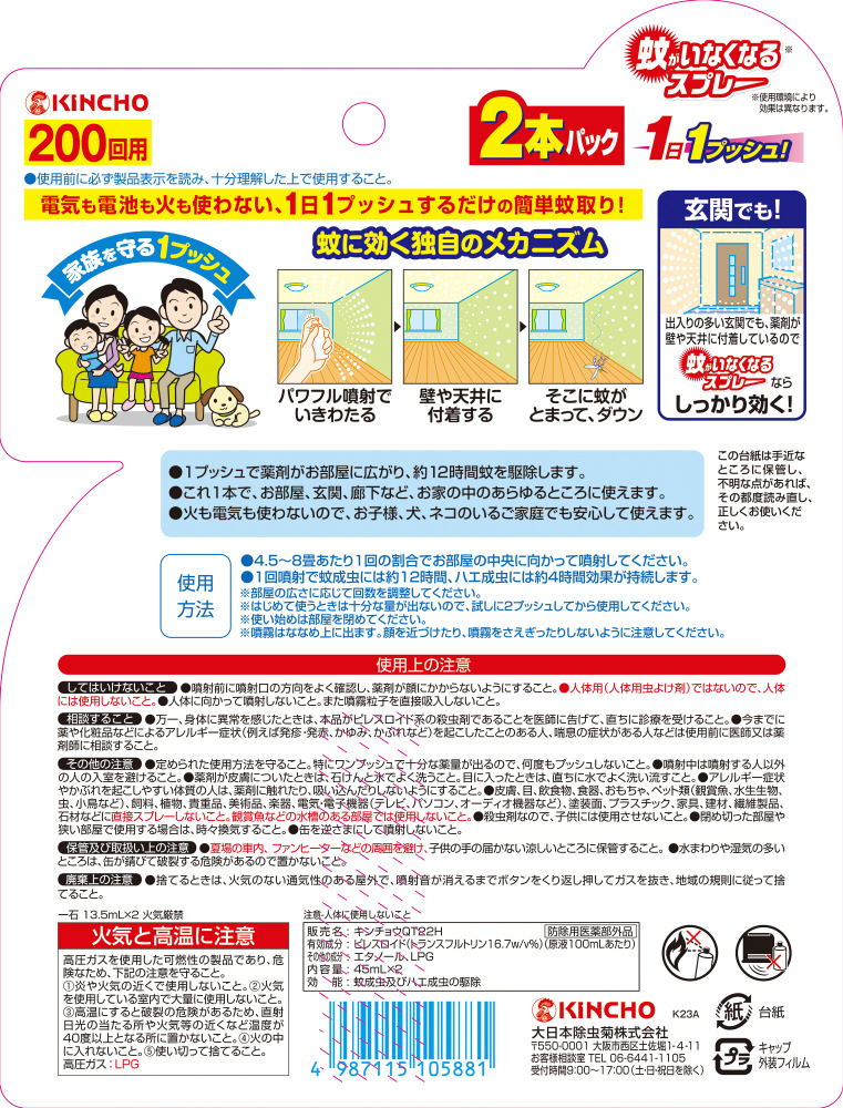 | 商品名 | 蚊がいなくなるスプレー 200回 無香料 2本パック |