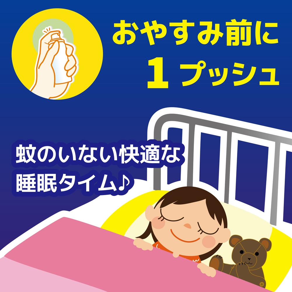 4.5〜8畳に1プッシュ。お部屋全体に効きめが拡がり、蚊成虫に対して約12時間効果が持続します