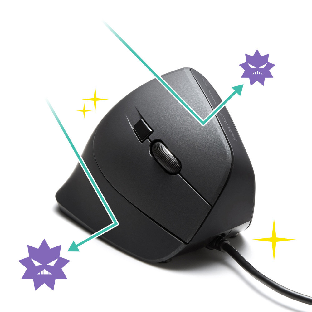 人間工学形状で手首の負担を軽減できる!抗菌仕様の静音エルゴノミクスマウス。