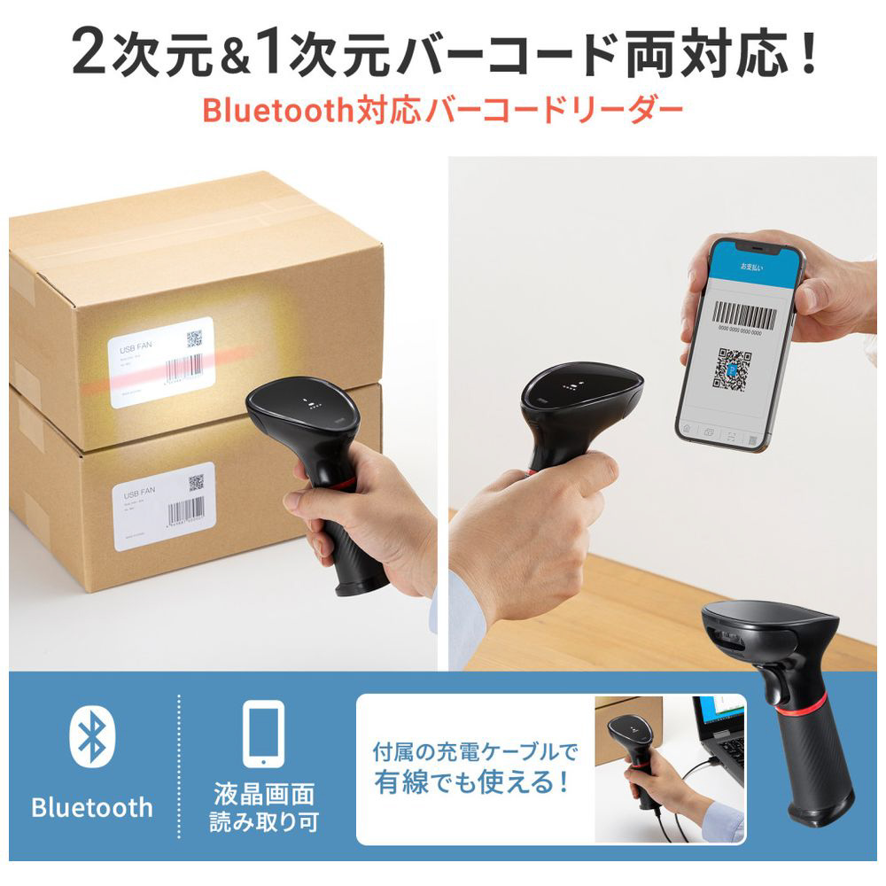 バーコードリーダー [Bluetooth /2次元・1次元対応] (Android/iPadOS/iOS/Mac/Windows11対応) BCR-BT2D4BK