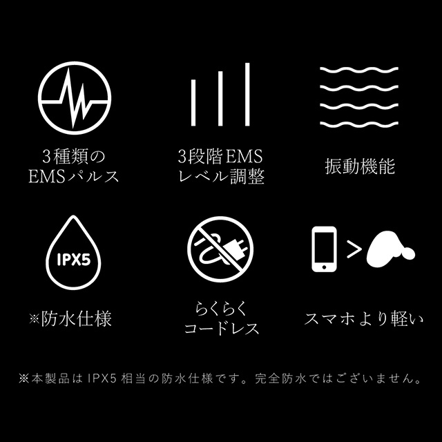 JIS基準(IPX5)の防水仕様。