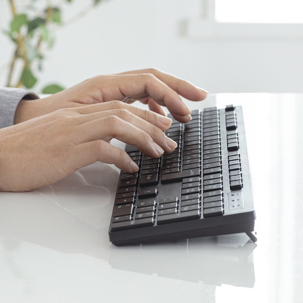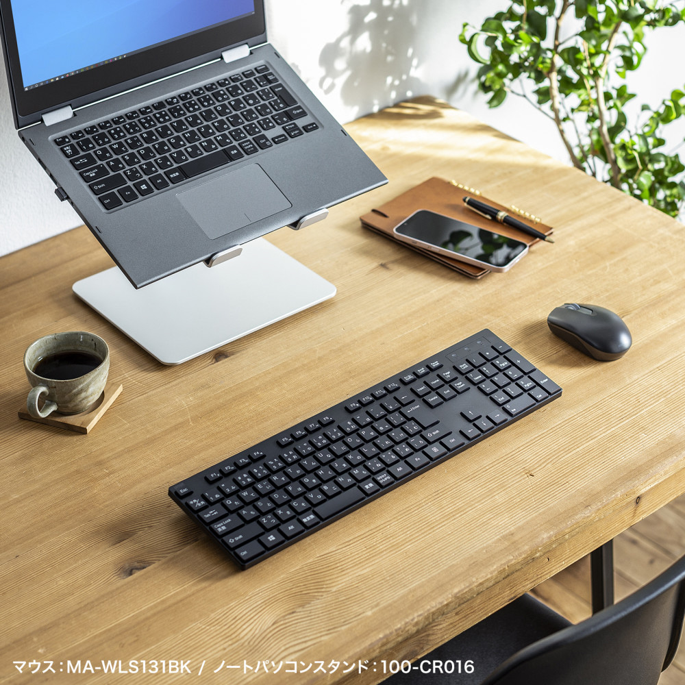 机の上を広々使える省スペースワイヤレスキーボード。