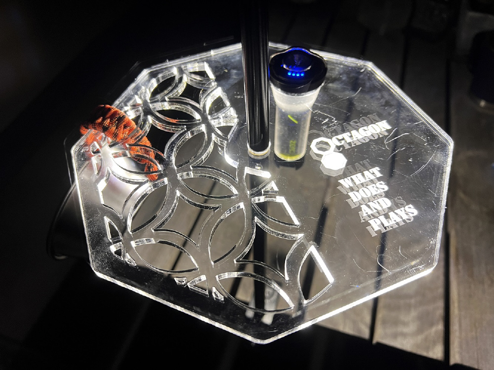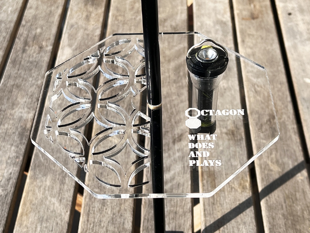 アクリルの透過性と反射率を活かしたオクタゴン形状のフラットプレート!GOAL ZEROを装着して、さらに光を反射してくれるギア。[5050 WORKSHOP 2WAY STAND 径11mm用]