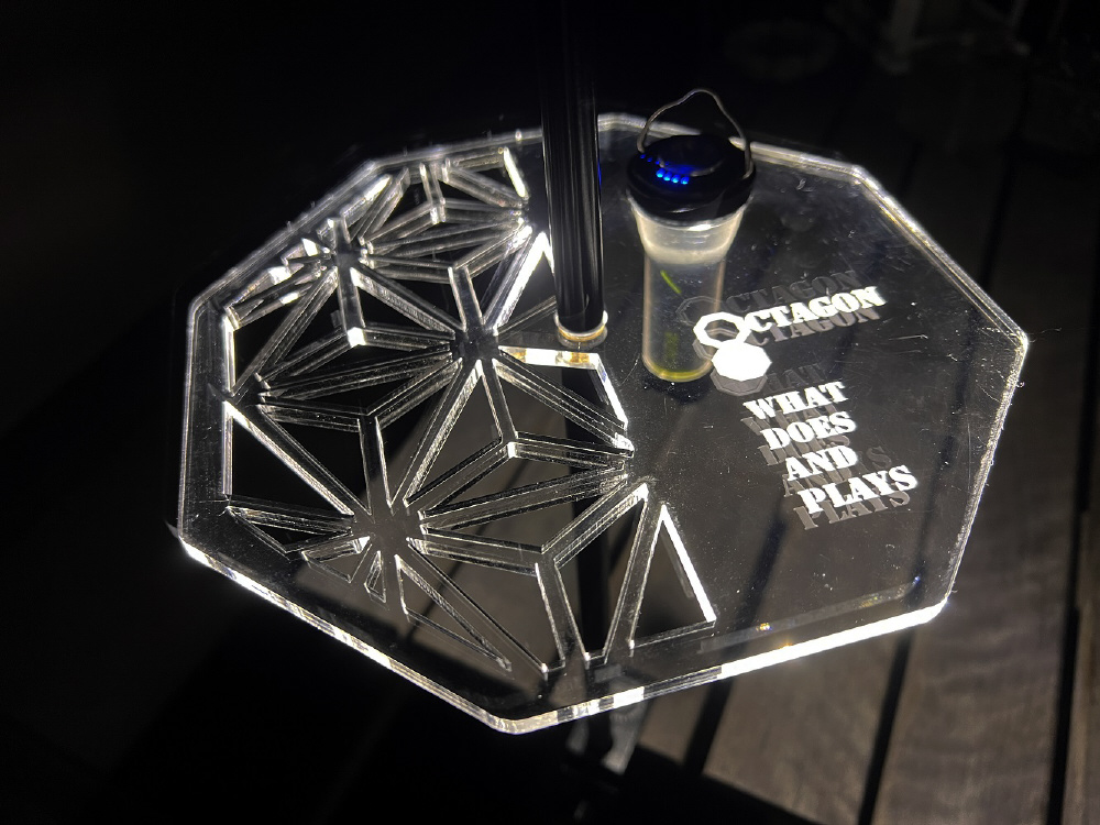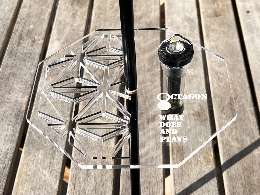 アクリルの透過性と反射率を活かしたオクタゴン形状のフラットプレート!GOAL ZEROを装着して、さらに光を反射してくれるギア。[5050 WORKSHOP 2WAY STAND 径11mm用]