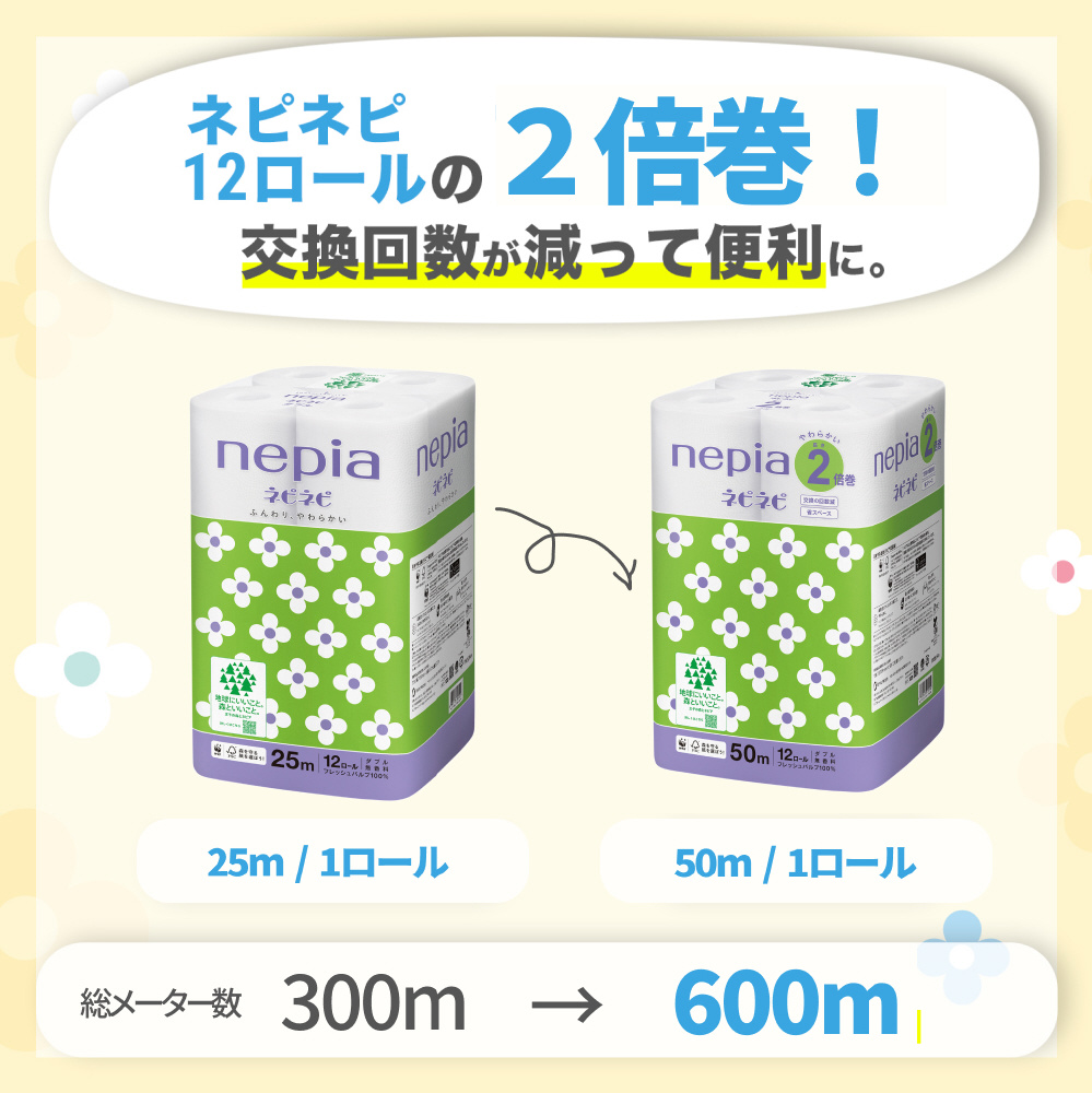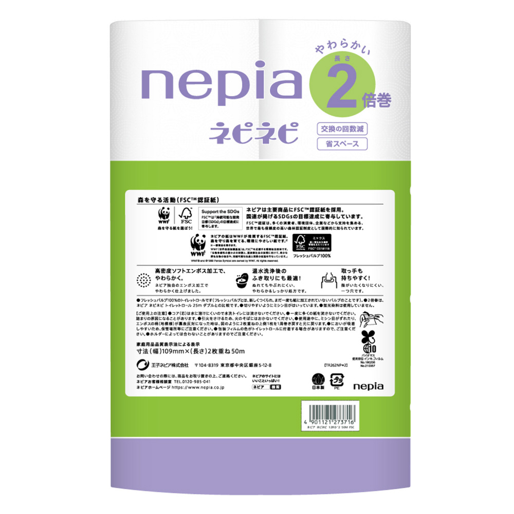 ネピア(nepia)ネピネピ トイレットロール 2倍巻 12ロール ダブル 50m FSC [トイレットペーパー]