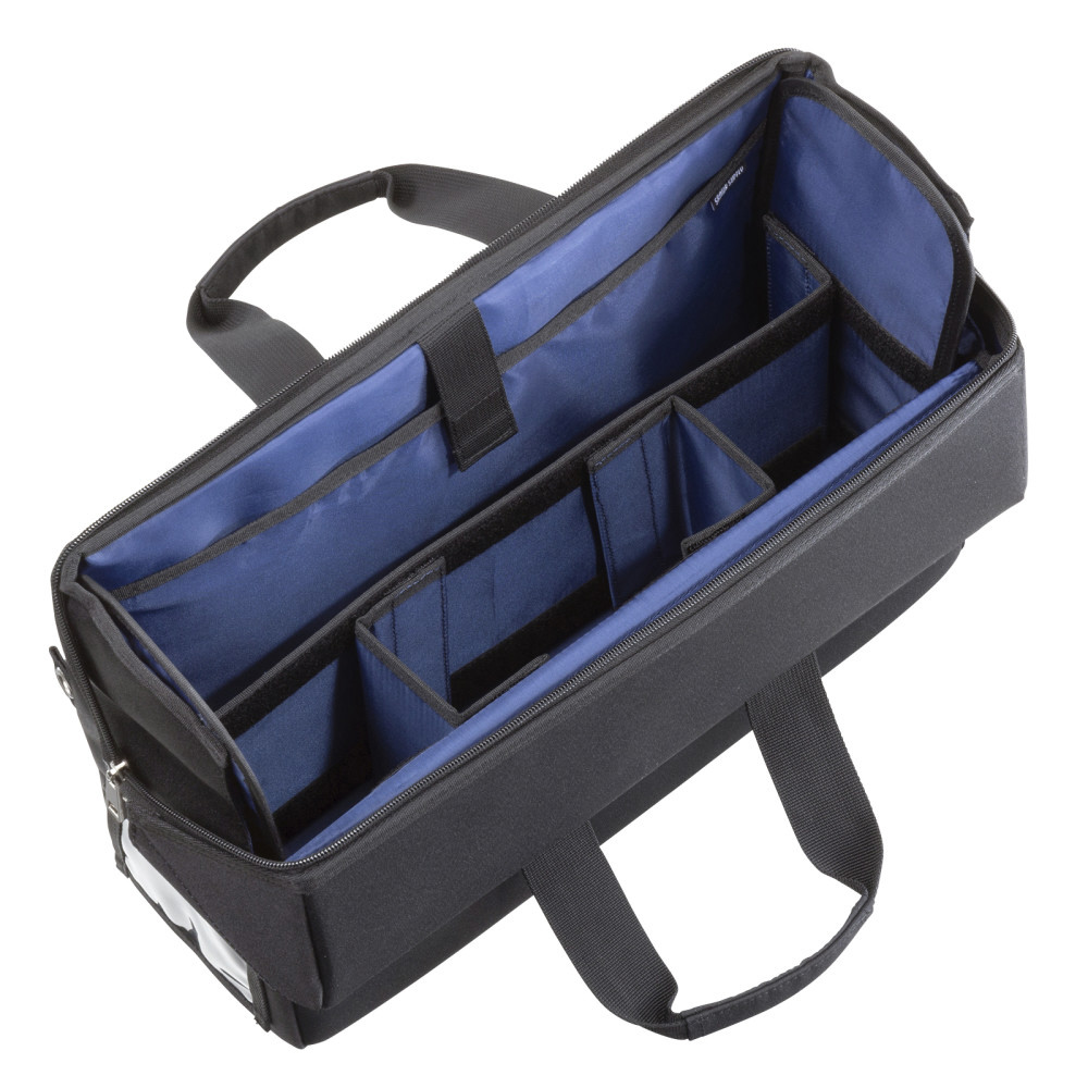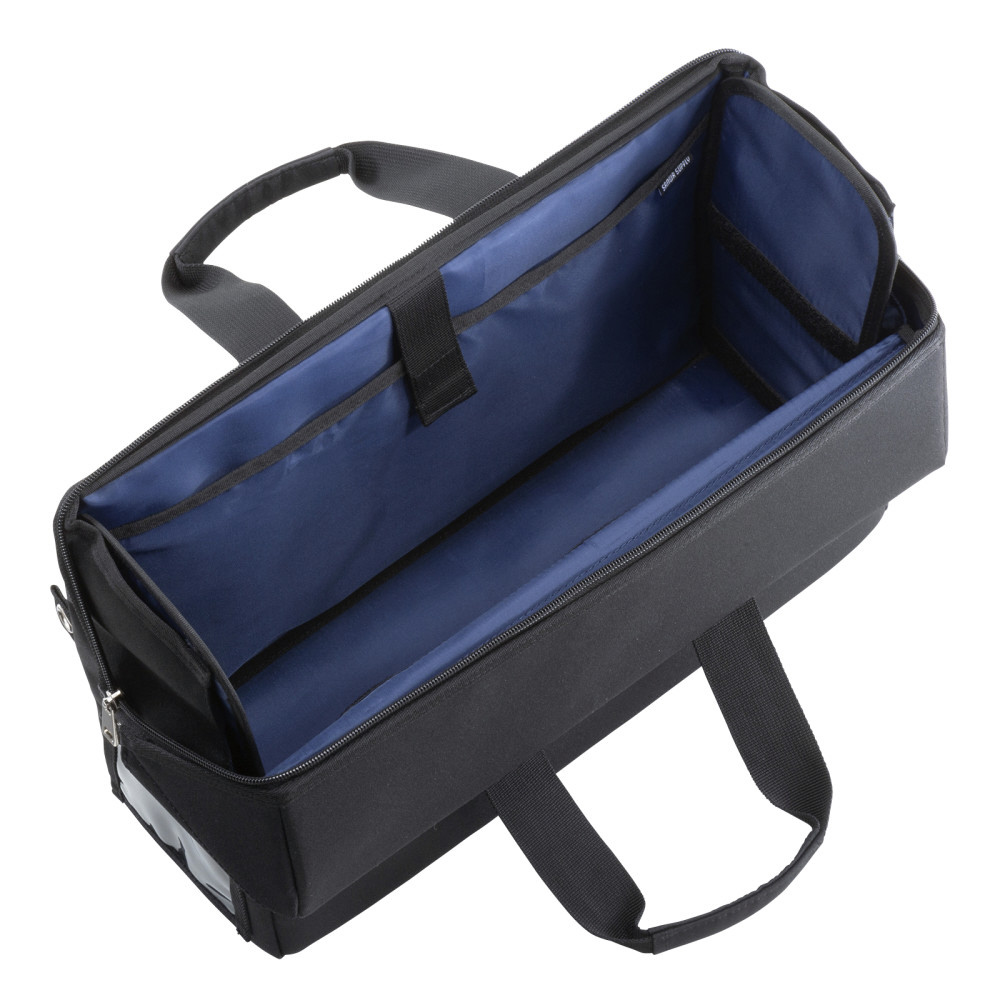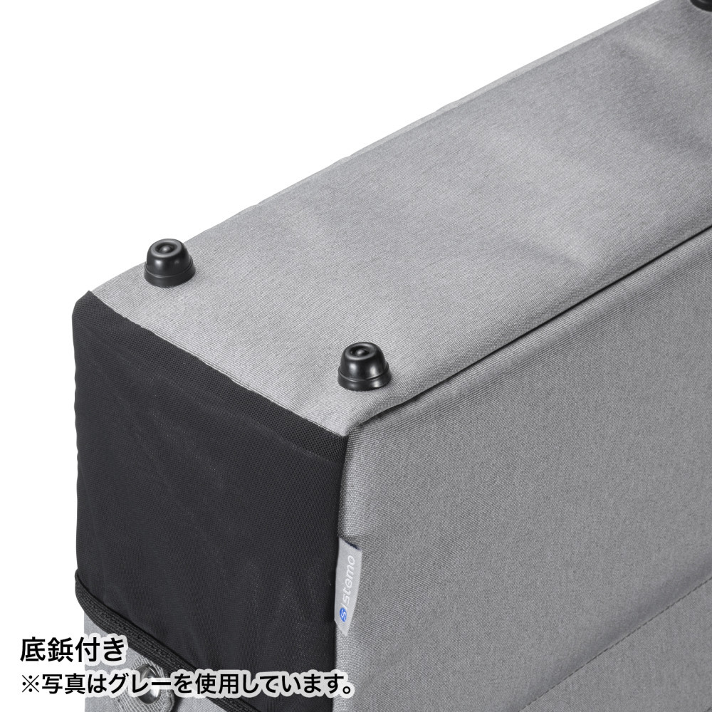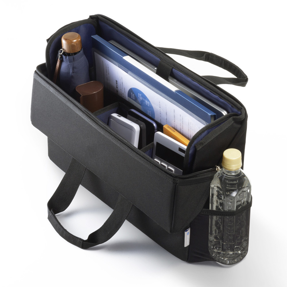 収納物が出し入れしやすいスライドオープンの蓋ふた付きBOX型バッグ。13.3インチワイドまでのノートパソコン対応。