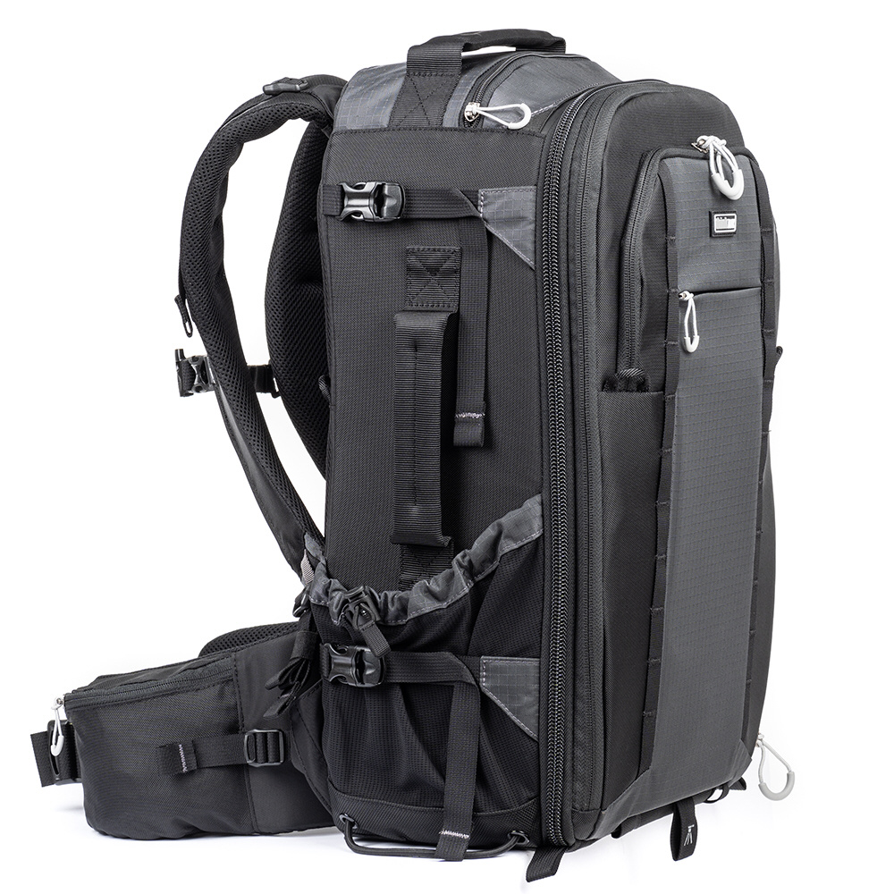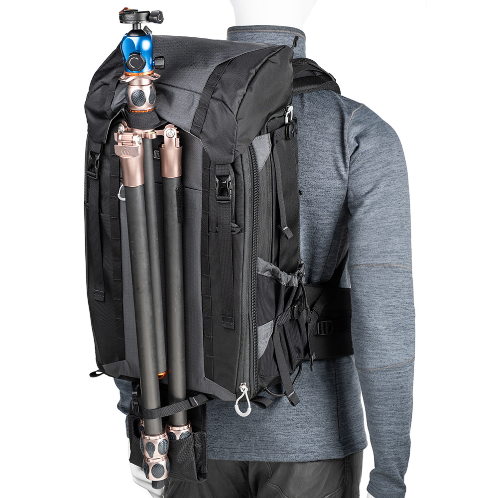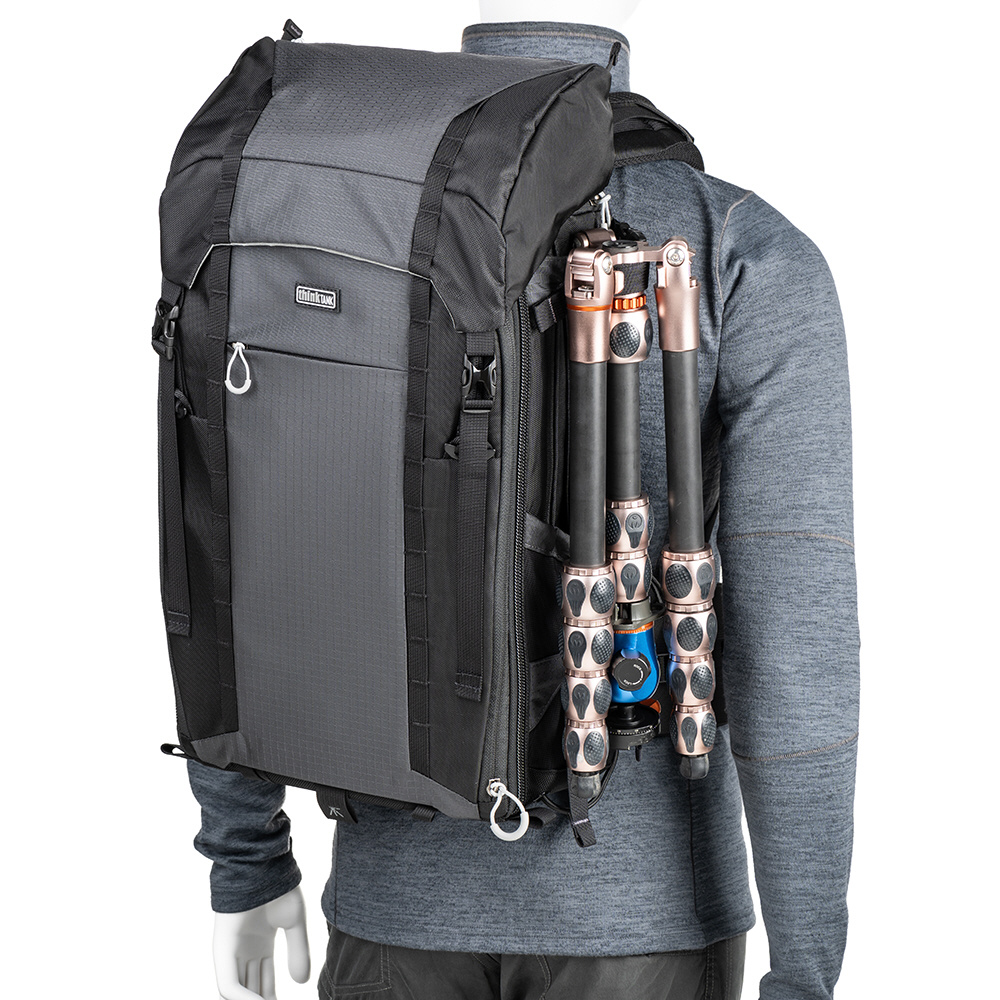 機材や荷物を持ちながら移動することが多いアウトドアフォトグラファーのために設計された多機能なバックパックです。