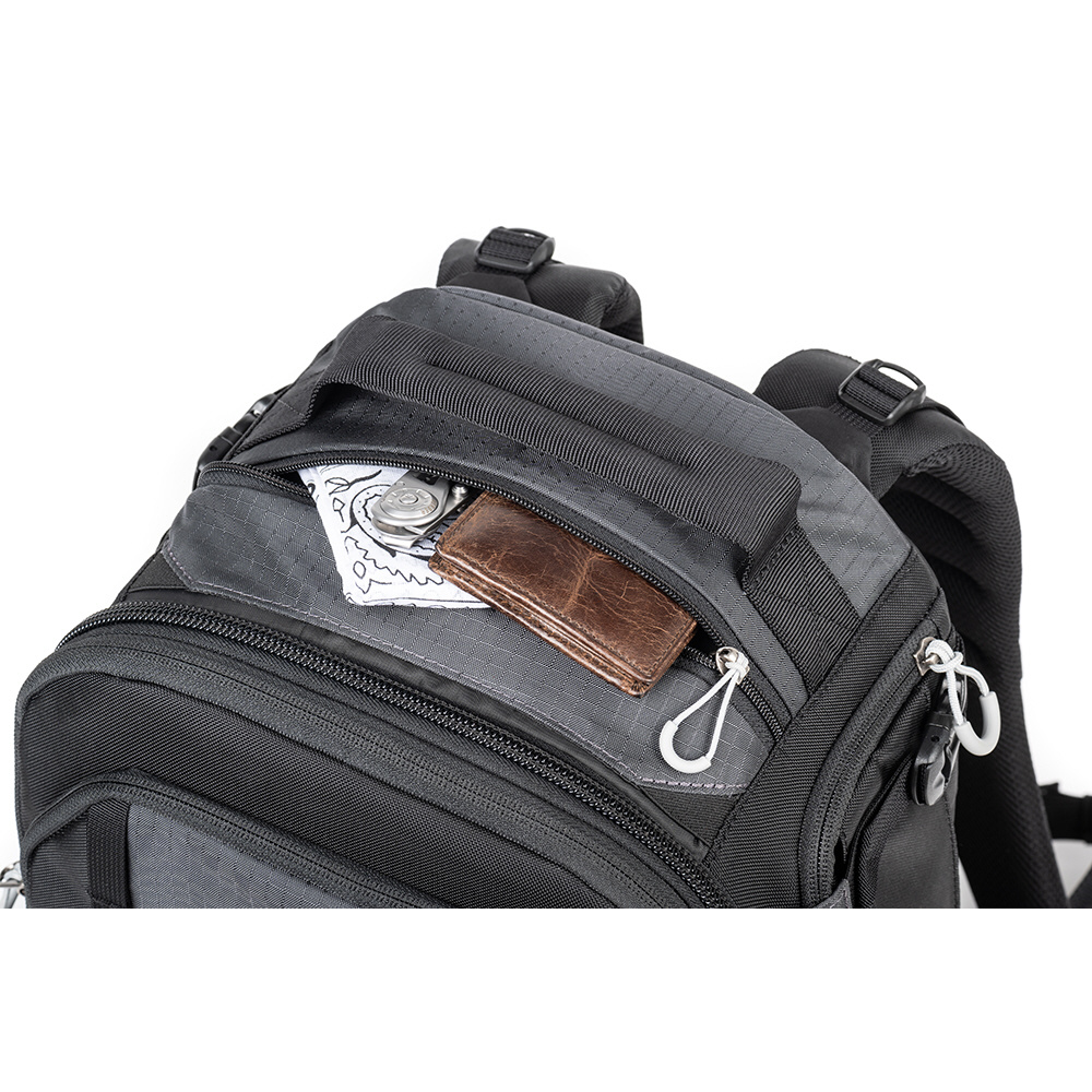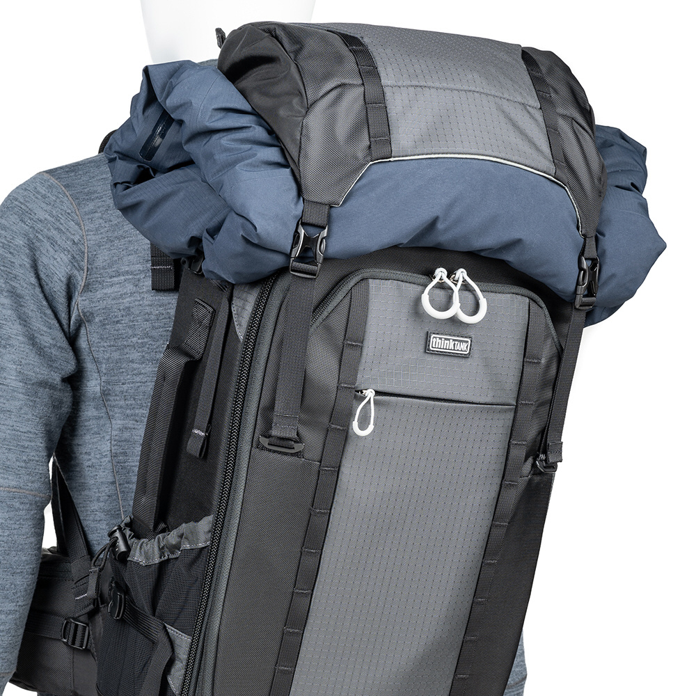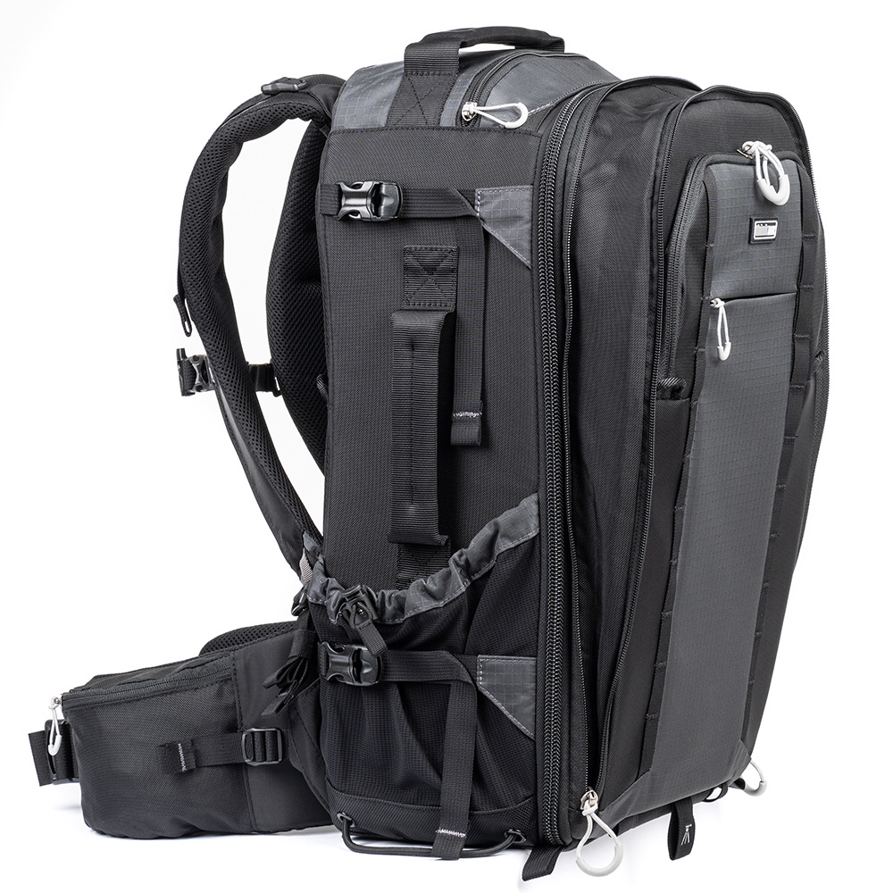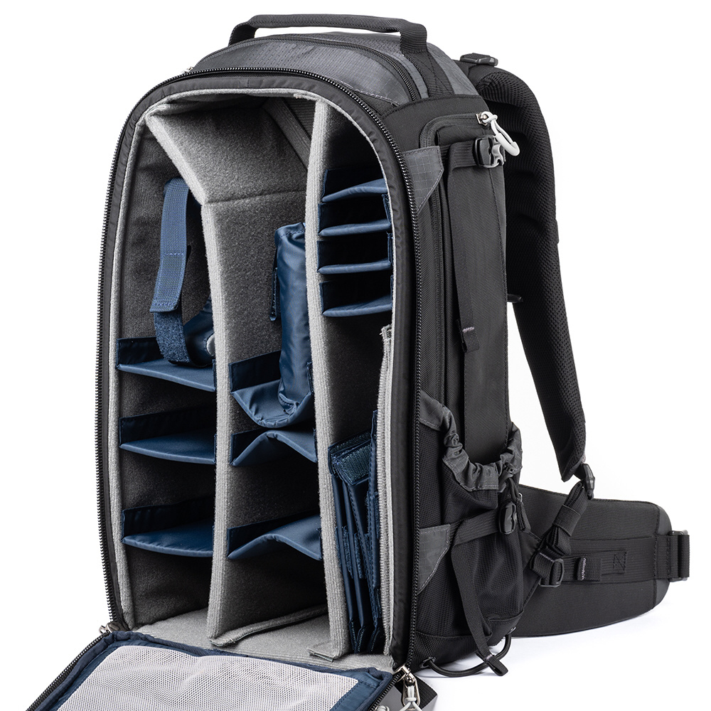 機材や荷物を持ちながら移動することが多いアウトドアフォトグラファーのために設計された多機能なバックパックです。