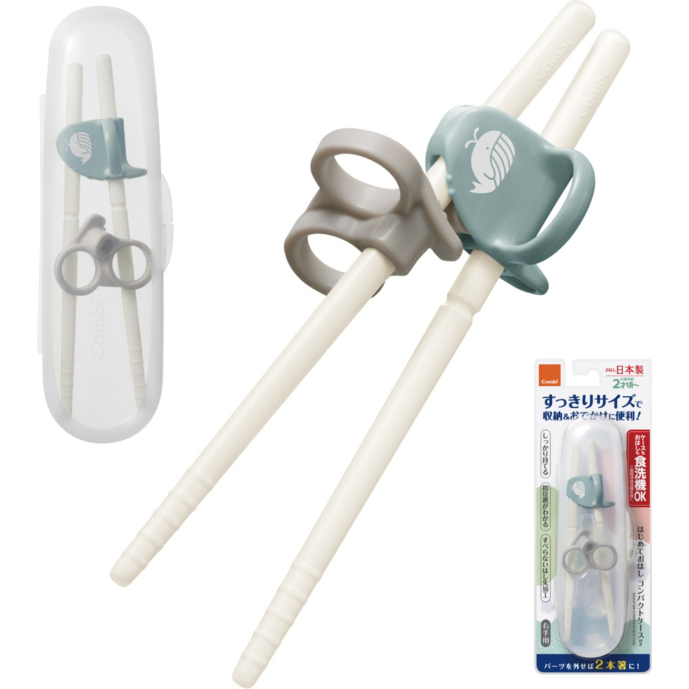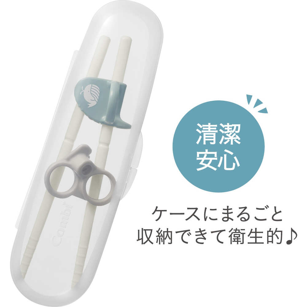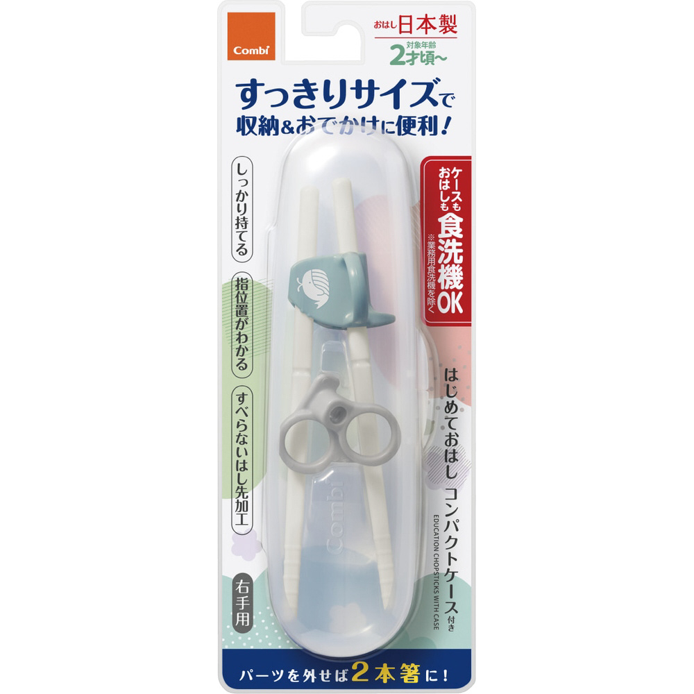 すぐにつかめて、やる気が育つ!プラスチックのおはしに、コンパクトケース付きが新登場!3つのポイントですぐに使え、3ステップで長く使える右手用おはしです。すっきりサイズで収納&おでかけに便利。