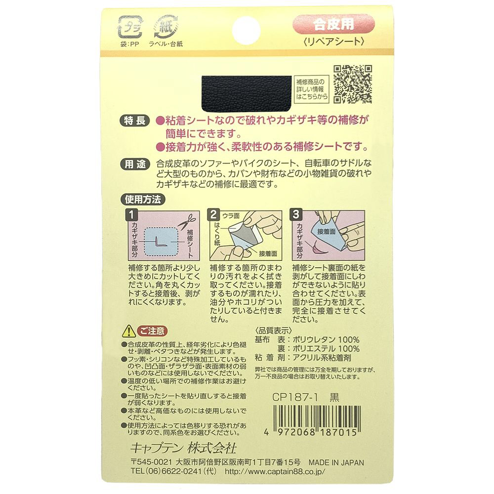 ■合皮生地を使用した補修シートです。