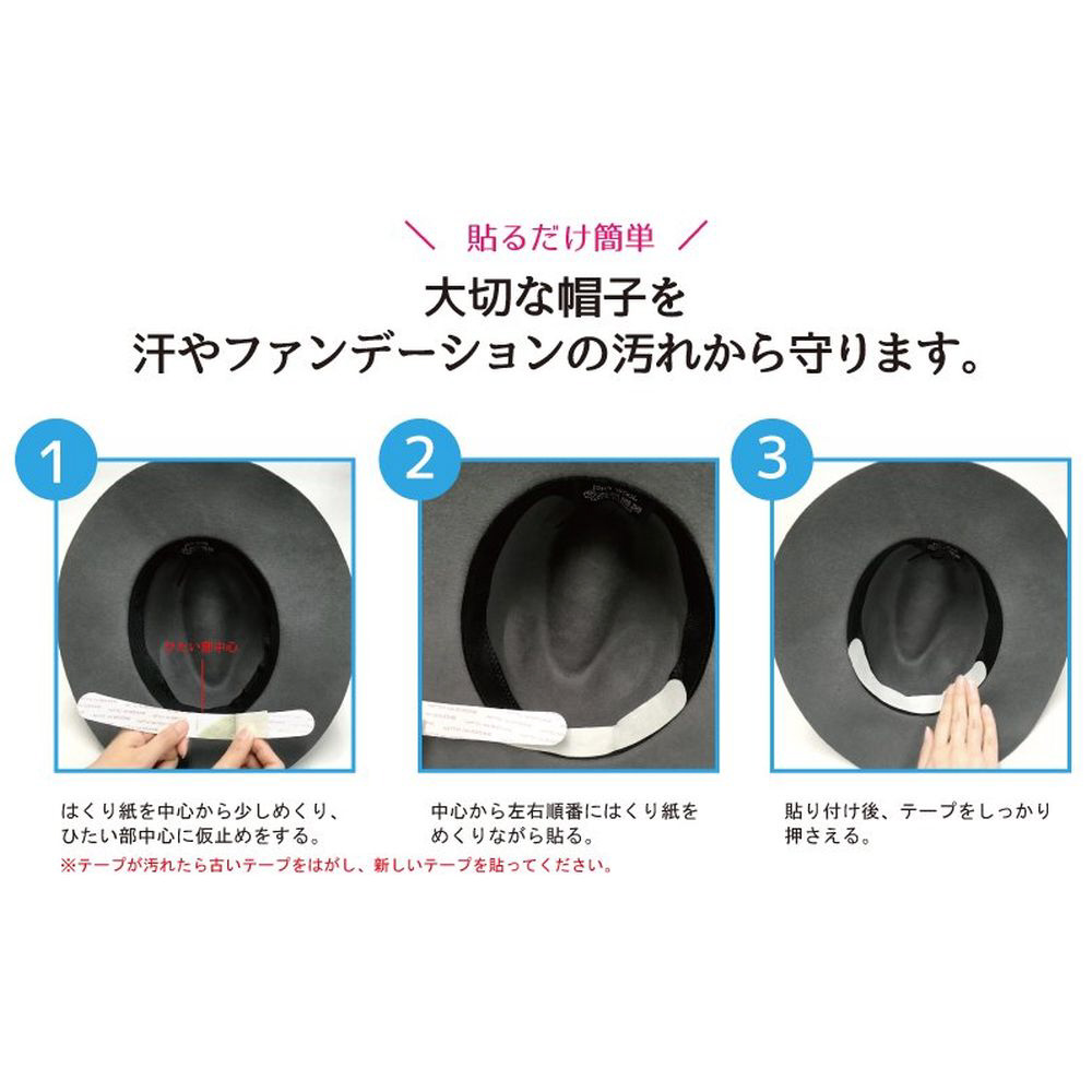 帽子内側の額が当たる部分に貼り付けて使う帽子ケアテープ。