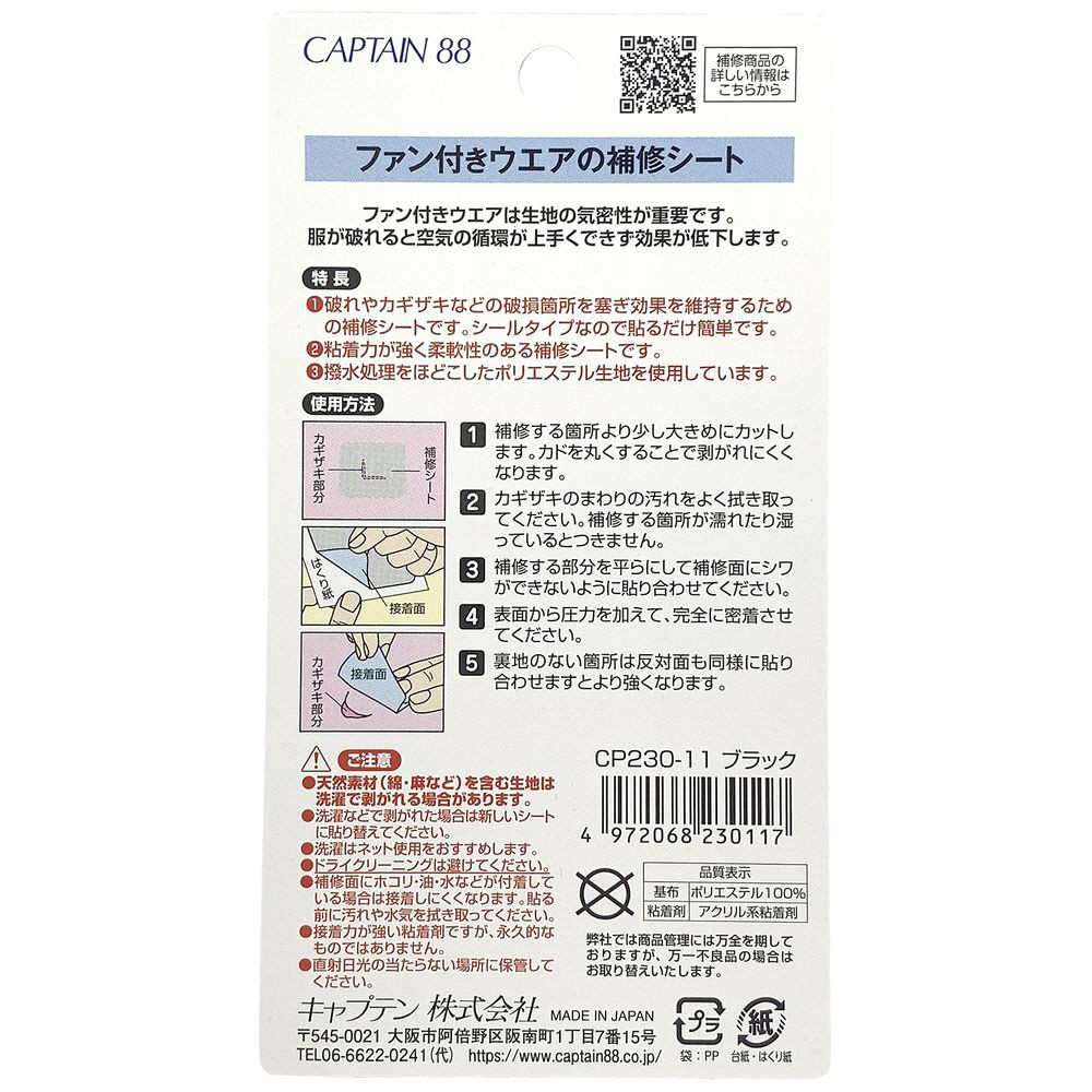 ファン付きウエアの補修に適した補修シートです。