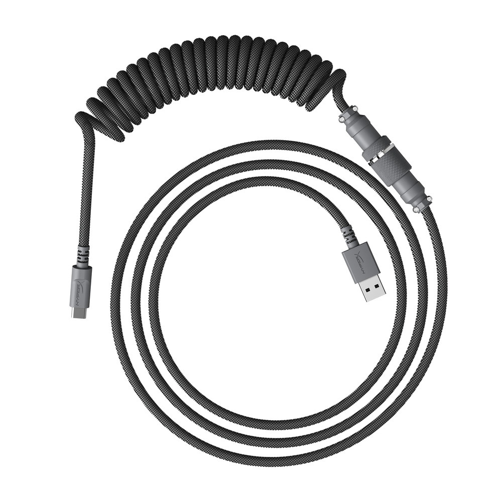 HyperXコイルケーブルは、USB-C - USB-A接続を使用し、すばやく抜き差しができるクイックデタッチ5ピンアビエイターコネクタを備えています。