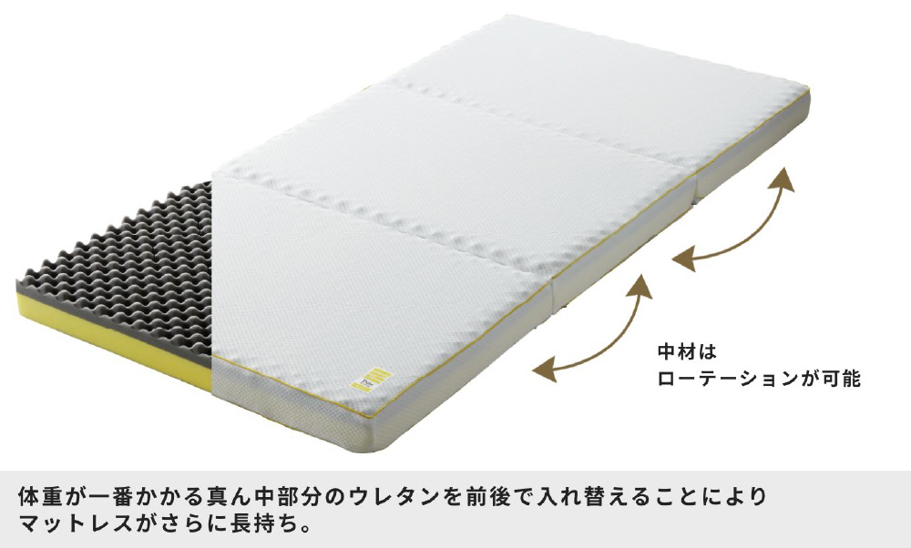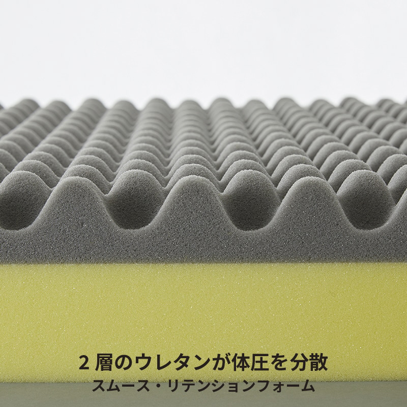柔らかめのグレー層で体圧を分散。硬めのイエロー層でしっかり全身を支え、 バランスのよい寝姿勢を保持。