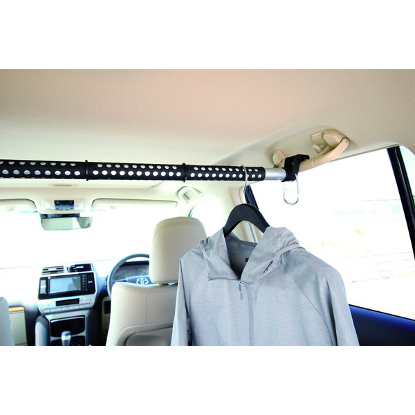 上着をハンガーのままかけたり、前後に2本使えば車内積みに便利です。