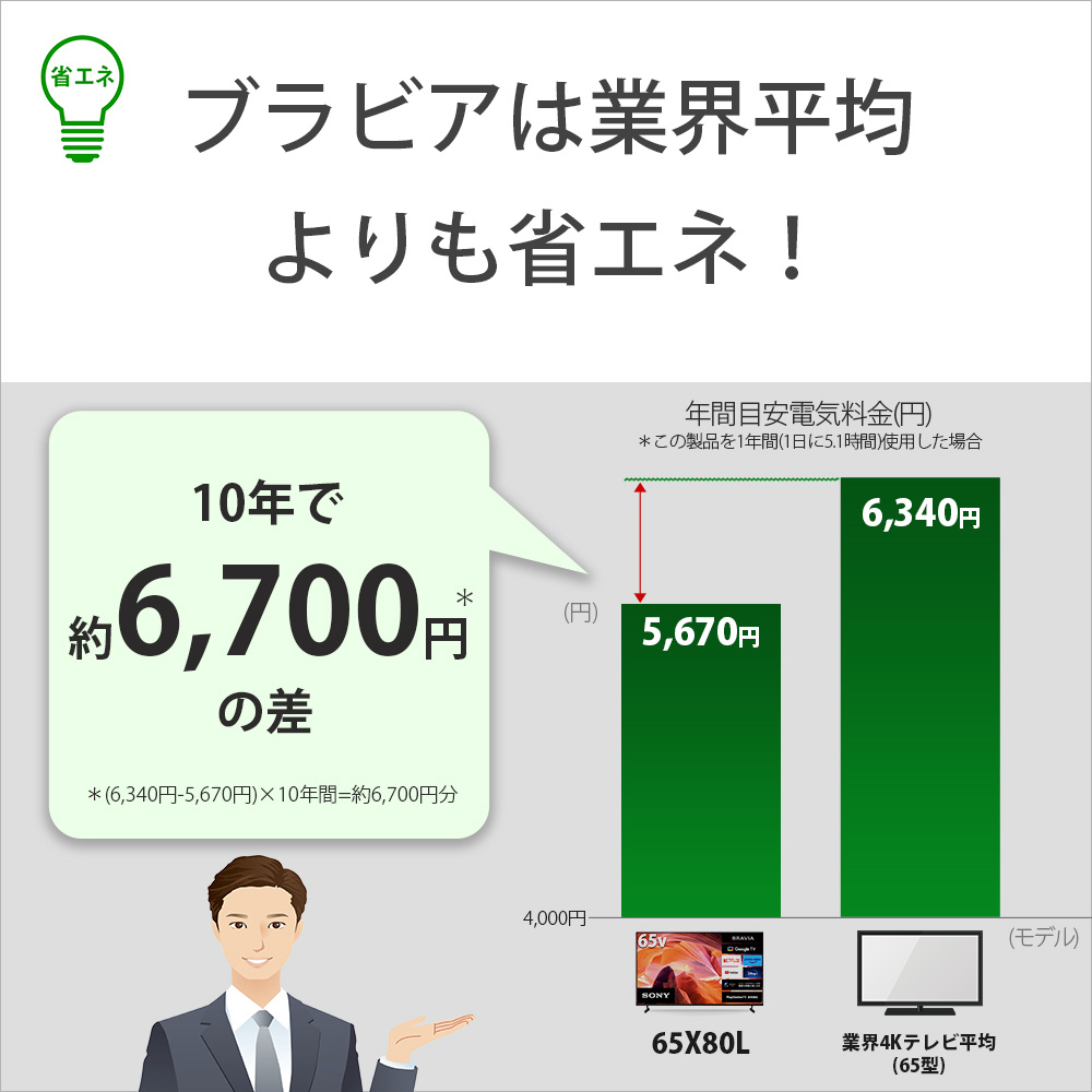 液晶テレビ BRAVIA(ブラビア) KJ-65X80L [65V型 /Bluetooth対応 /4K対応 /BS・CS 4Kチューナー内蔵 /YouTube対応]