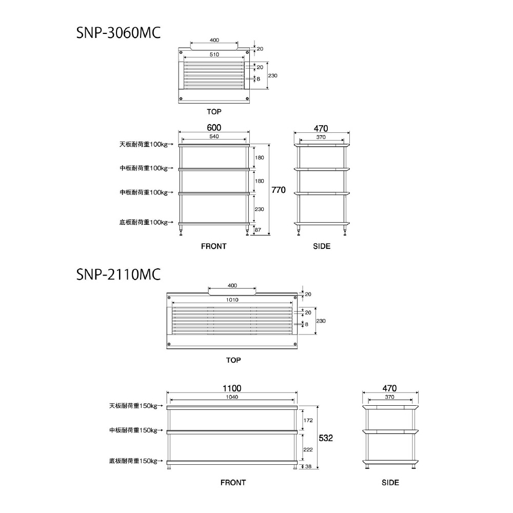 | 総耐荷重 | 150kg (天板・中板・底板) |