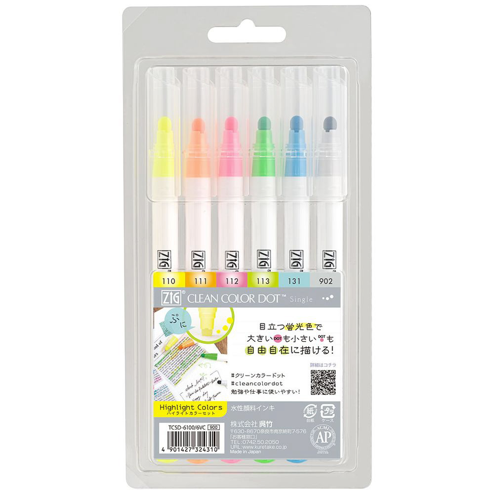 | 商品名 | 水性マーカー 6色セット ZIG クリーンカラードットシングル ハイライトカラーセット TCSD-6100/6VC |