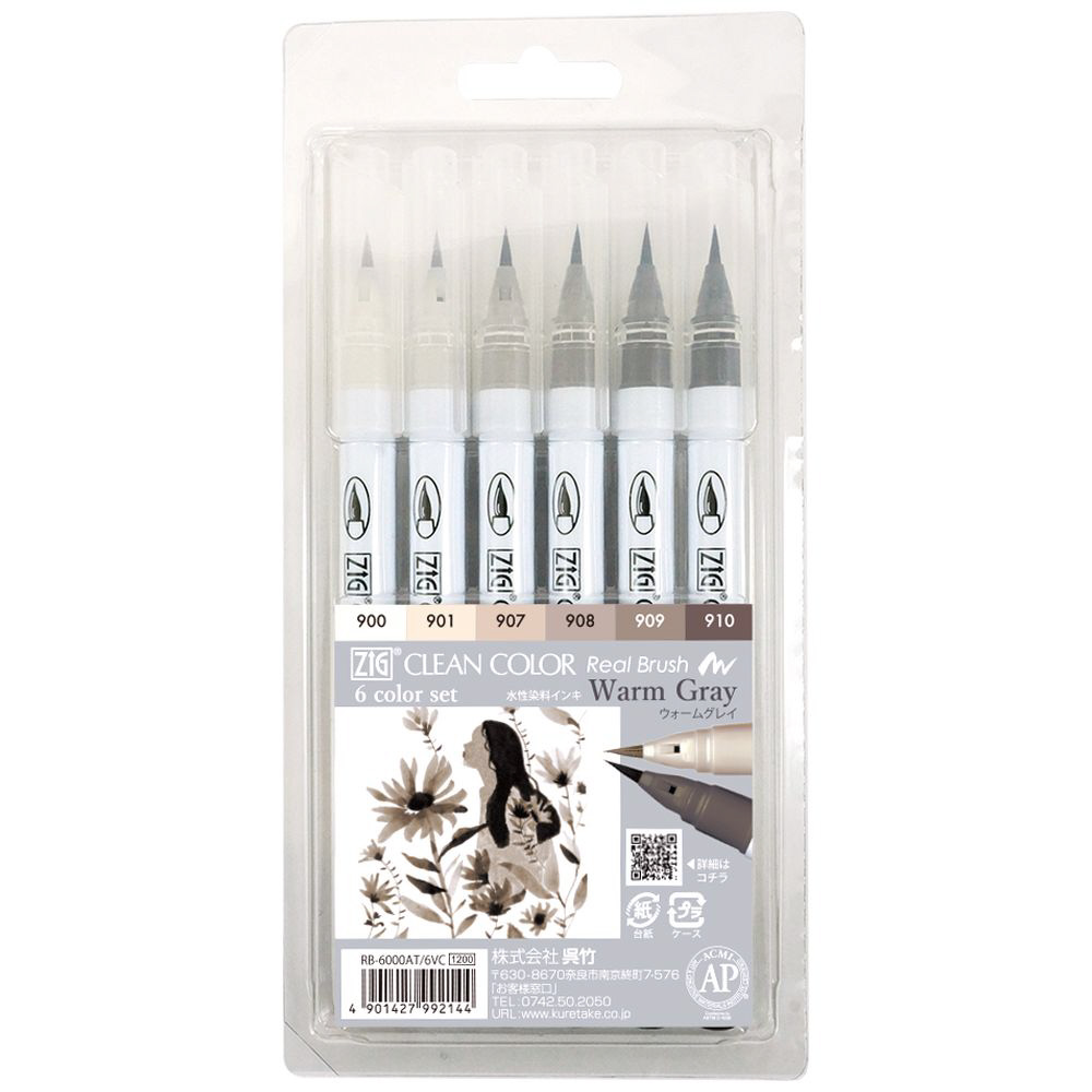 | 商品名 | 筆ペン ZIG クリーンカラーリアルブラッシュ ウォームグレイ・6V RB-6000AT/6VC |