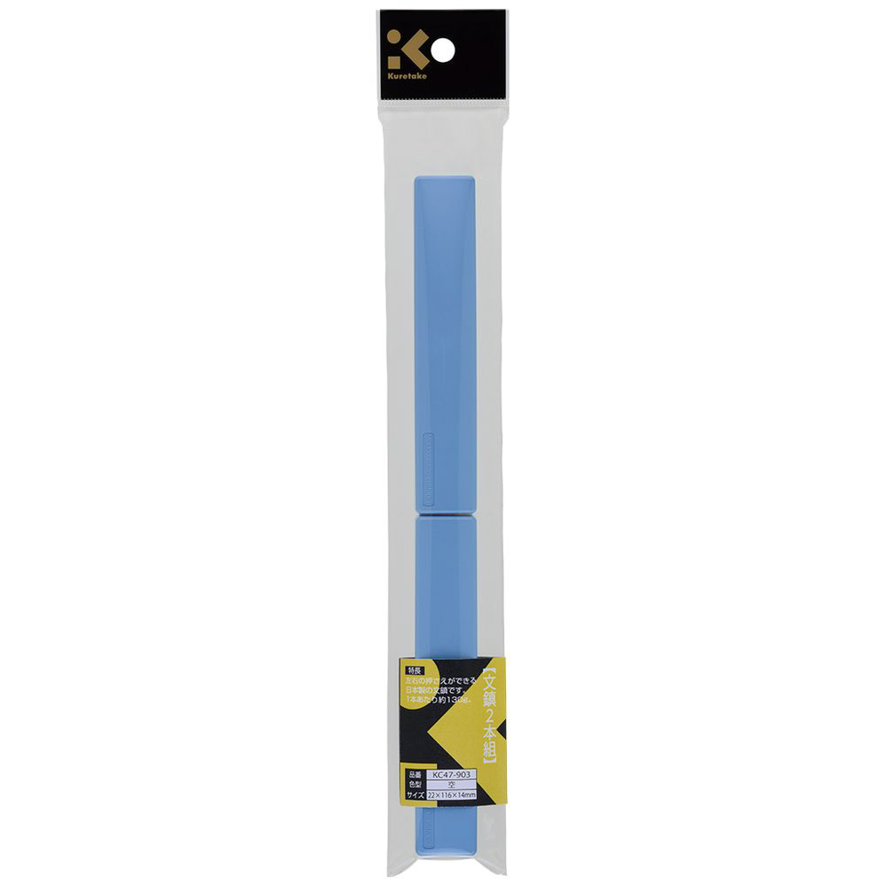 左右の押えができる、2本組文鎮です。男の子も女の子も使いやすい空色。
