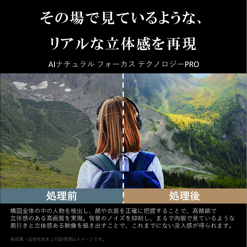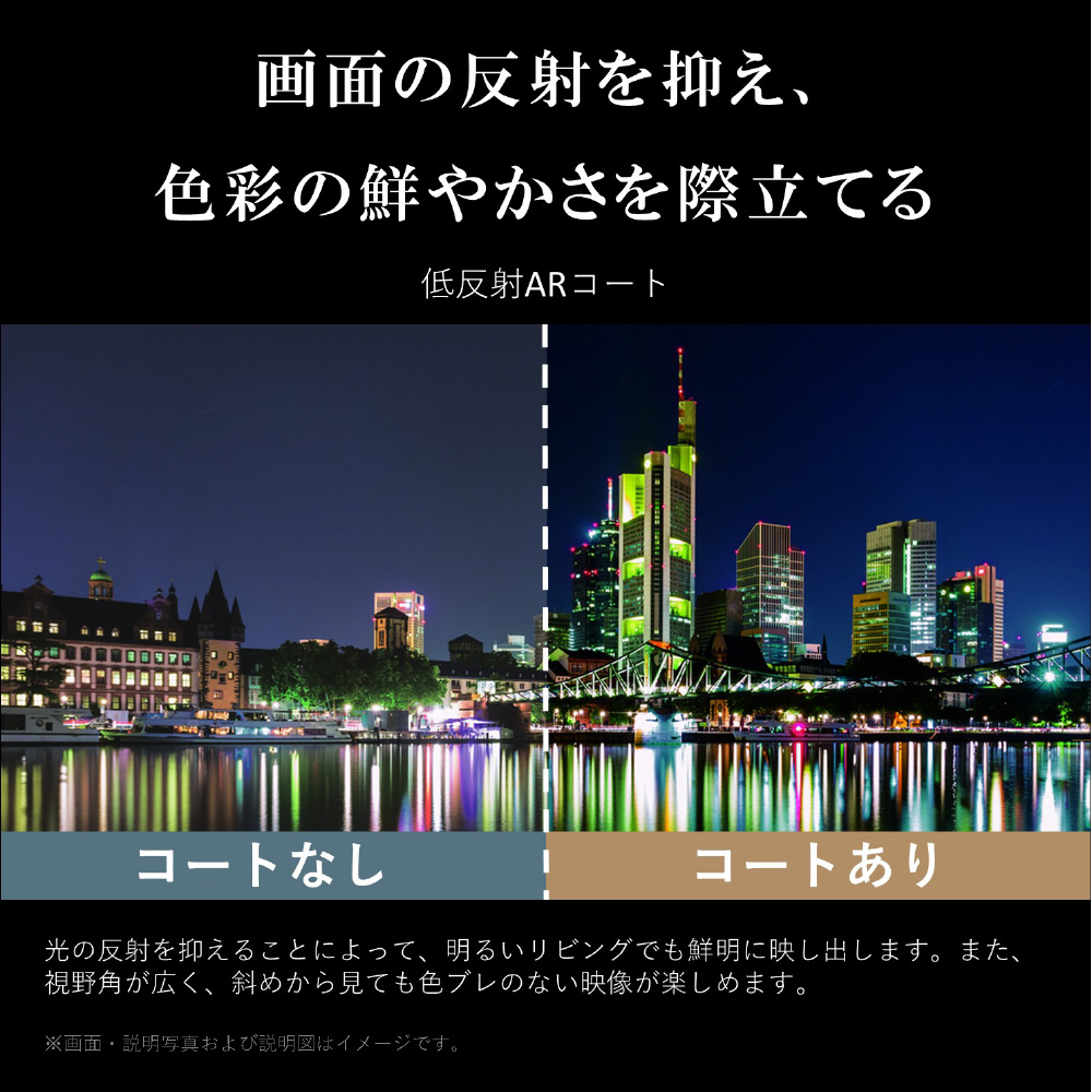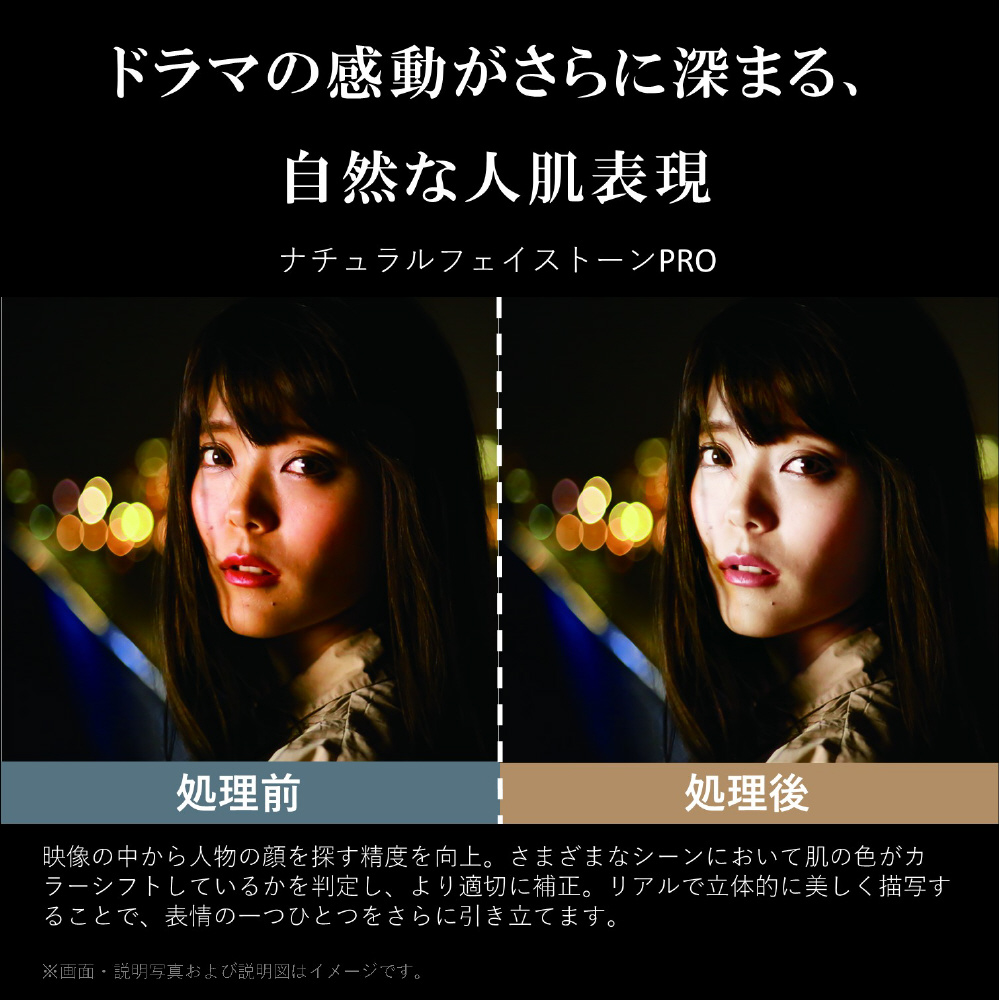 従来機種に比べ約2割*輝度がアップし、さらに増した明るさと鮮やかさに加え、引き締まった黒により新世代の高画質を実現。