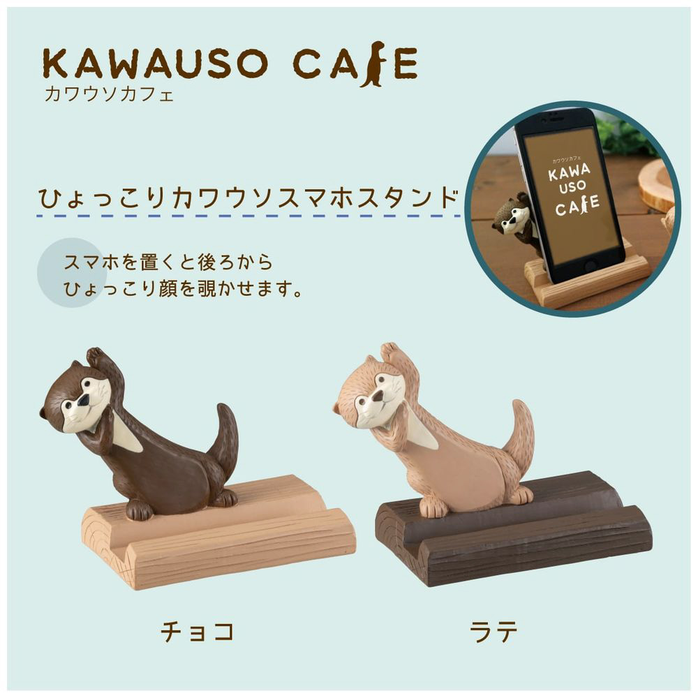 ゲームをするときや動画を見るときに便利なスマホスタンド。人気のカワウソカフェシリーズ。ほっこりなかよしカフェタイム。スマホを置くと後ろからひょっこり顔を覗かせます。