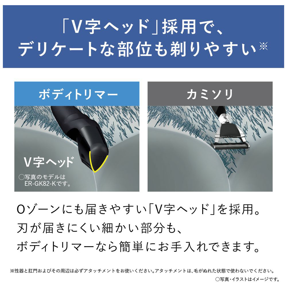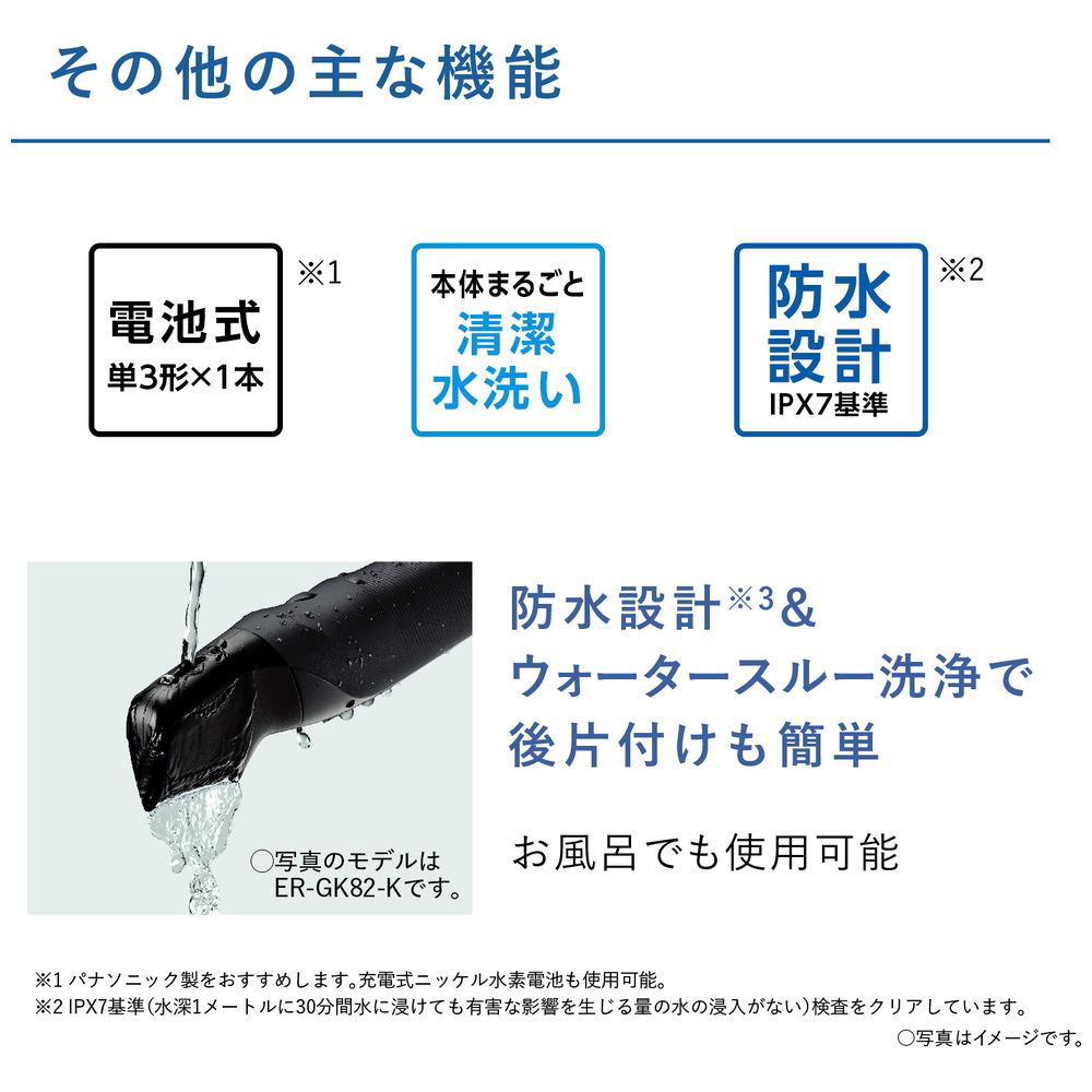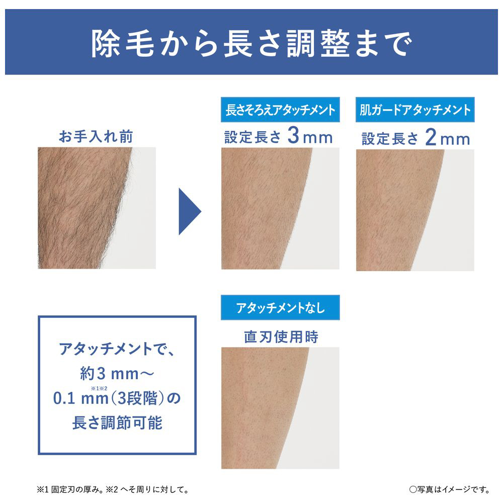 肌にやさしく、全身、体毛ケア。約0.1mm〜3mmの長さ調節に対応。電池式