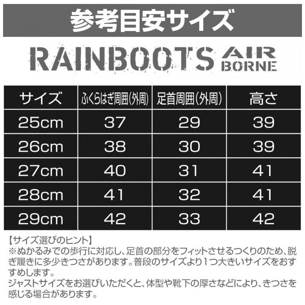 メンズ レインブーツ エアボーン AIRBORNE(25cm/ブラック) 4249007 ブラック 4249007