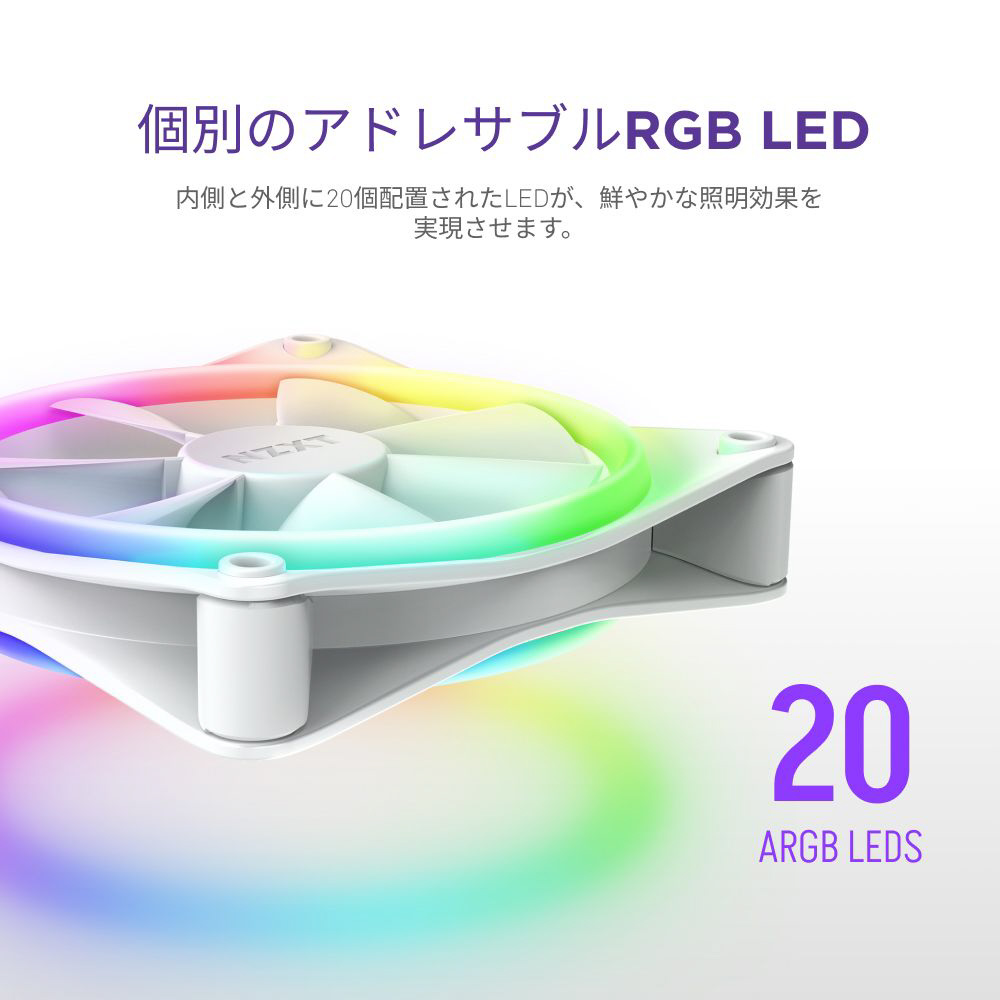 20個のLEDによるRGBライティングと高い静圧性能を兼ね備えています。