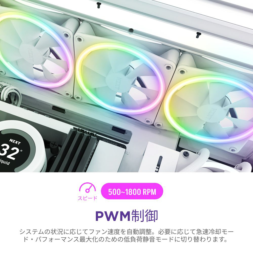 ケースファンx3 [120mm /1800RPM] +コントローラー F Series RGB DUO Fans ホワイト RF-D12TF-W1