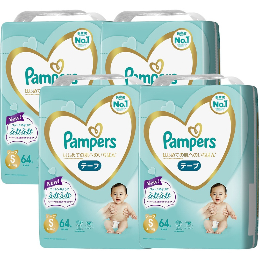 【ケース販売】Pampers(パンパース)はじめての肌へのいちばん テープ スーパージャンボ S(4-8kg)64枚×4個(256枚)