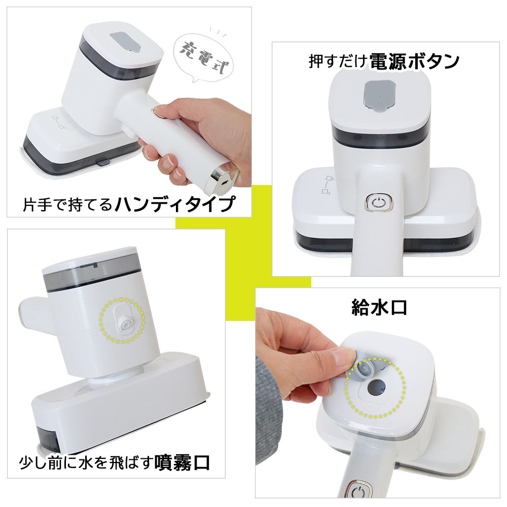 水をスプレーしながら吸い取るので、ホコリが舞う場所の掃除にもおすすめです。階段や窓などの日常の掃除、ホコリがたまりがちな電灯のカサ部分の掃除にも使えます。「ちゃちゃっとスイーパー」の魅力は、手軽さや使い勝手のよさにあります。もちろんハンディ掃除機として使うことができます。