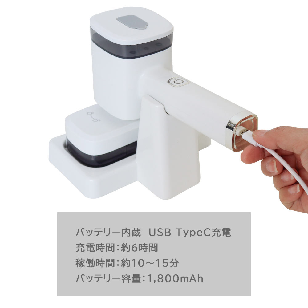 「ちゃちゃっとスイーパー」はバッテリー内蔵。USB充電式のコードレスタイプです。1回の充電で約10〜15分連続稼働します。