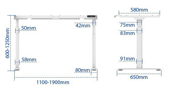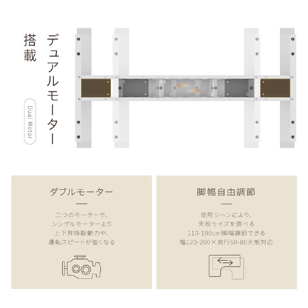 電動昇降スタンディングデスク 用 E8 脚フレーム ホワイト E8W-JA