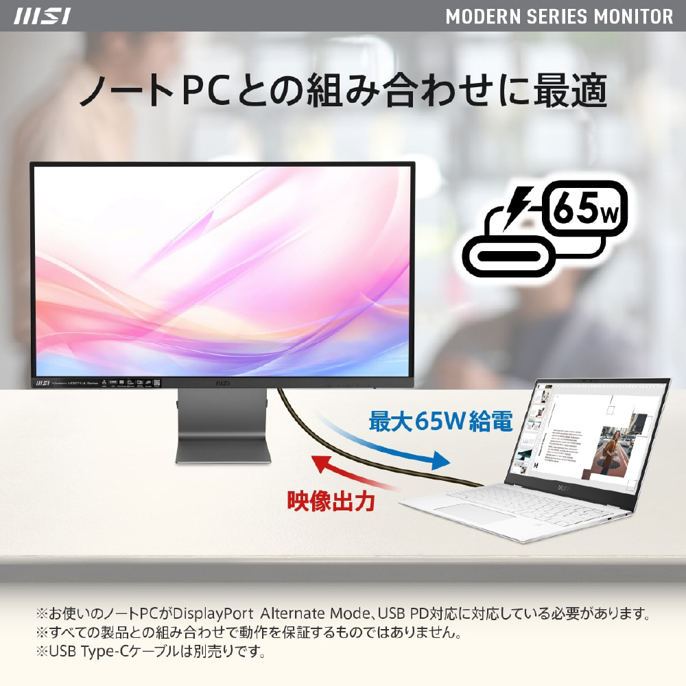 USB PD65W対応で使い勝手を向上させたビジネス向けモニター