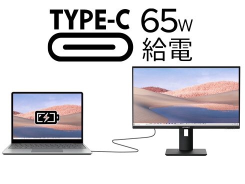■ケーブル1本で映像表示とノートPCへの給電が可能になりますのでデスク上もすっきりと使用が可能、またテレワークや出社の際にACアダプターを持ち運ぶ必要がありません。