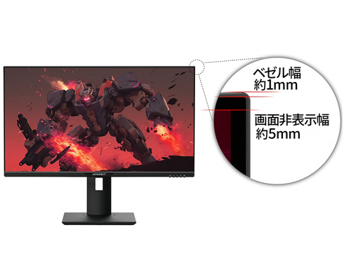 ■1ms(GTG OD時)の高速応答速度に対応し、動きの速いゲームや動画の表示の残像を抑え、鮮やかにくっきりと動画を表示します。