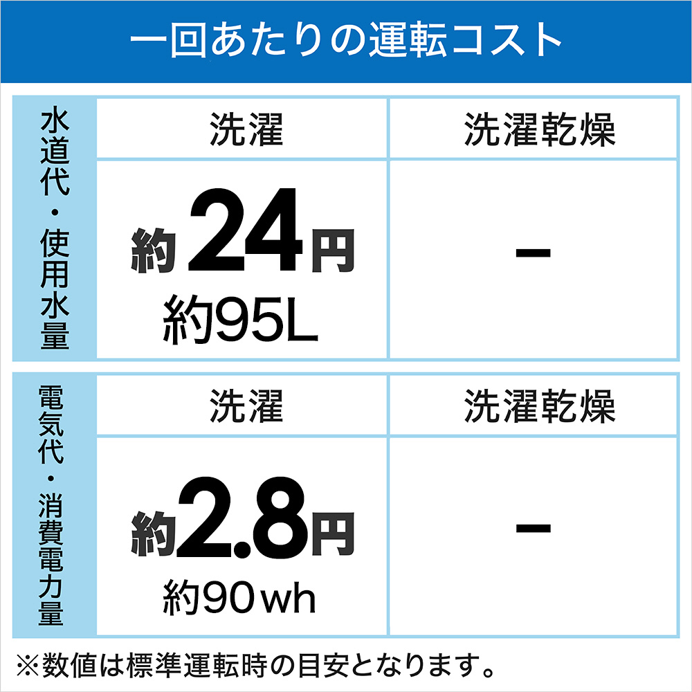 | 標準使用水量[洗濯〜乾燥時] | 95L |
