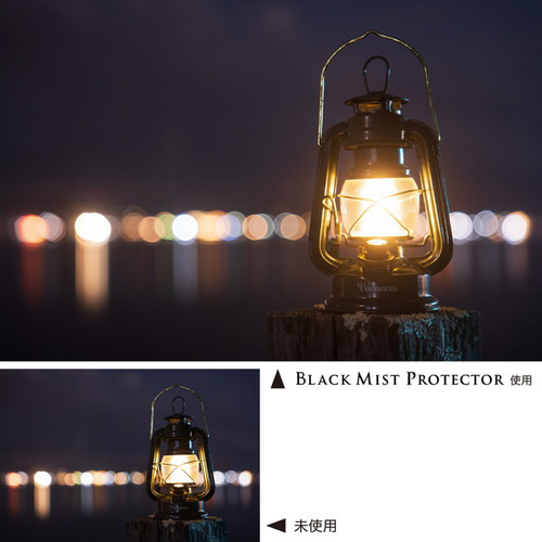 夜景や逆光撮影で映画のように印象的な雰囲気を作り出す「ブラックミストNo.1」の1/4相当のソフト効果を持つレンズフィルター。ほんのりと弱いソフト効果なので、保護フィルターのようにレンズに「つけっぱなし」でお使いいただけます。フレアやゴーストの発生を防ぐマルチコート、水滴や汚れを弾く撥水・撥油コートを採用し、レンズ保護フィルターとしての機能を高めました。