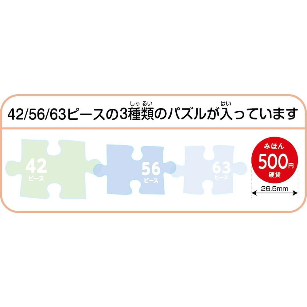 42・56・63ピースの3種類の絵柄のパズルが入っています。