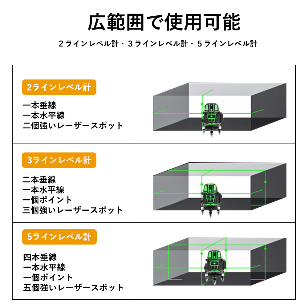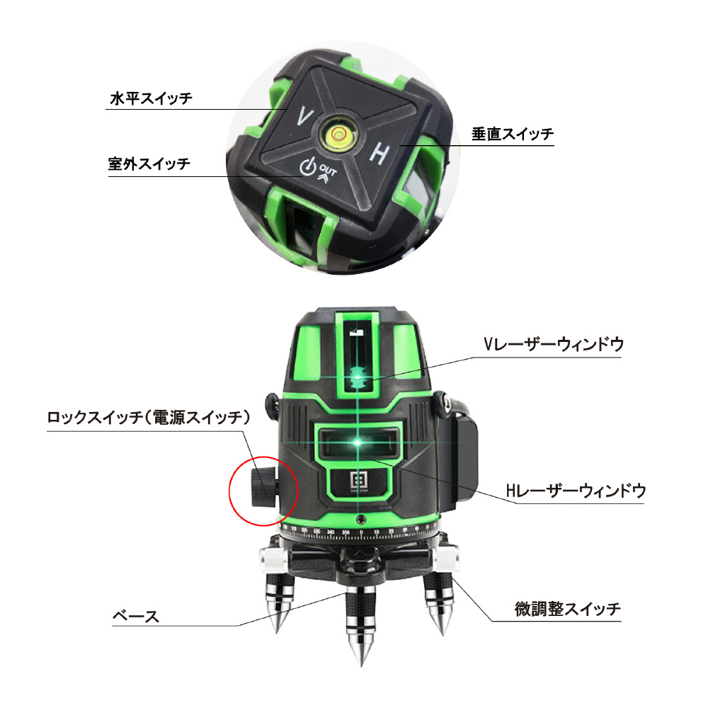 | 商品名 | 5 ライン グリーンレーザー墨出し器 |