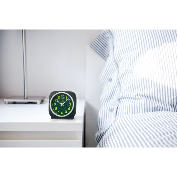 視認性に配慮した見やすい目ざまし時計。暗くなると自動でライトが点灯して文字板を照らします。