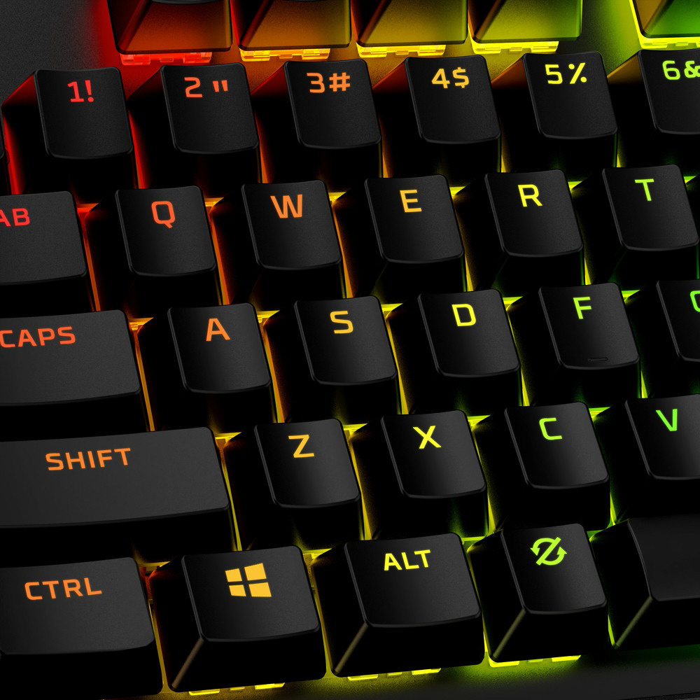 耐久性に優れ、独自のHyperXフォント、RGBエフェクトをより輝かせる設計のPBTキーキャップ(日本語配列/ブラック)