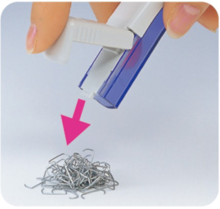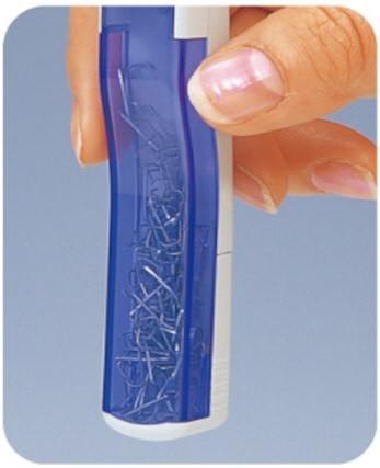 除針してそのまま収納。ワンタッチ廃棄。適合針No.10。先端で除針した針をそのままリムーバ本体に収納。マグネット内蔵で、針が飛び散りません。