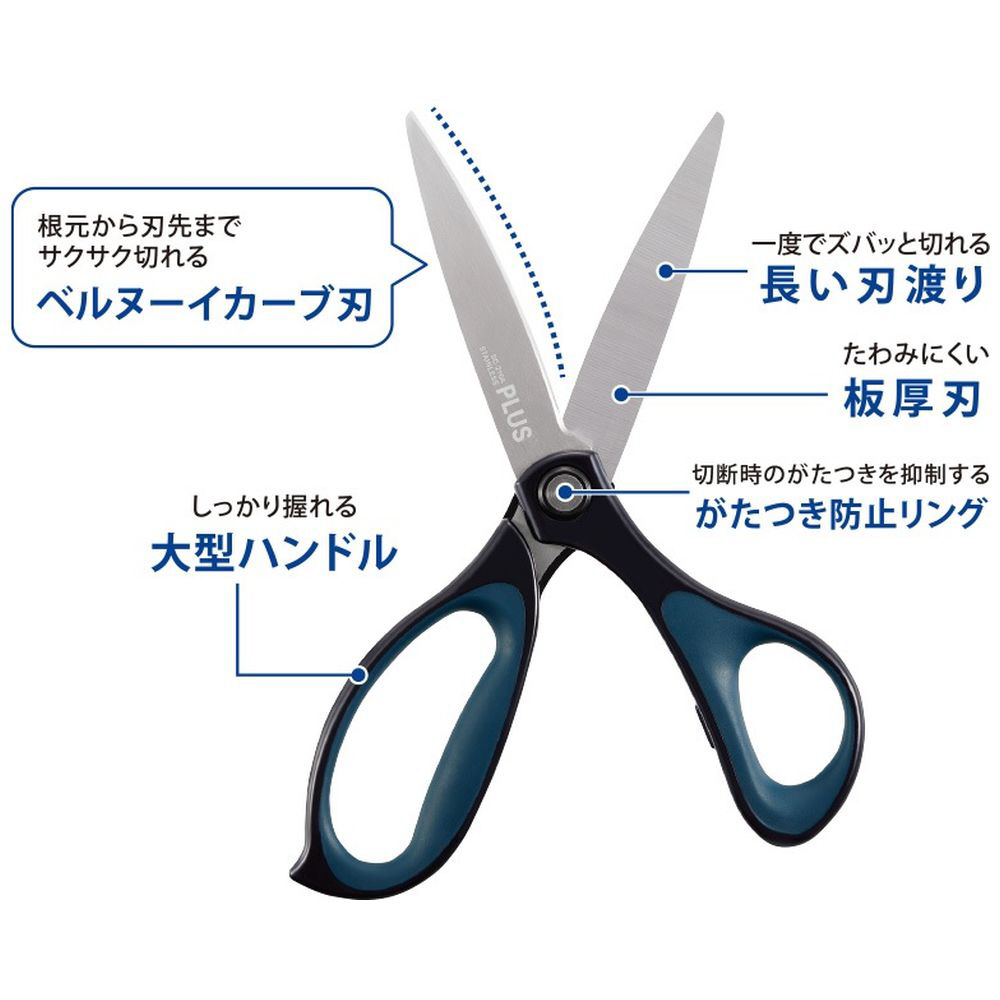 軽い切れ味が特長のベルヌーイカーブ刃を採用。常に最適な刃の開き角度を保ち、刃の根元から刃先までどの位置で切っても対象物をしっかりキャッチします。封筒などの紙類から梱包用のひも、菓子袋、洋服のタグ、ビニール袋などはもちろん、ダンボールなど厚み・長さのあるものを一気に切る際にも軽い切れ味を発揮。シーンを選ばず便利にお使いいただけます。
