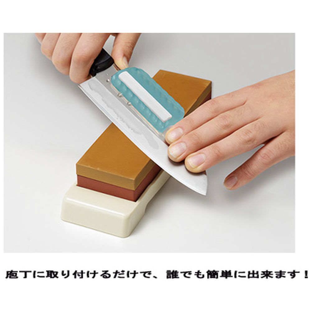 藤次郎の研ぎホルダーで、簡単に45度の角度で研磨できます。