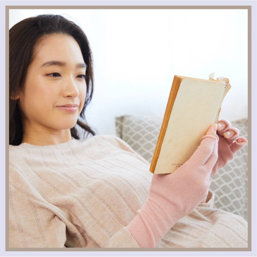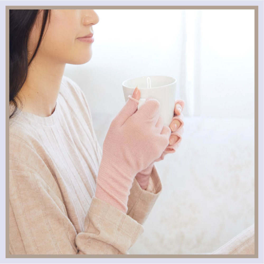 手首まで長め丈設定でパジャマの袖口としっかり重なり冷たい空気をカット!手首までしっかり温めます。指先は物が掴みやすいオープン仕様。